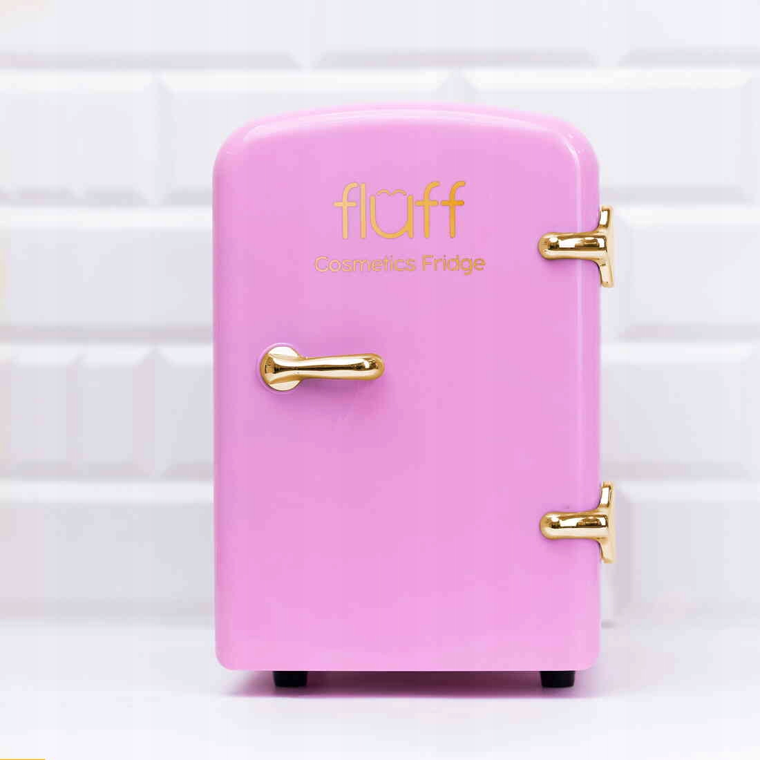 Фуфний косметичний холодильник рожевий + золотий логотип