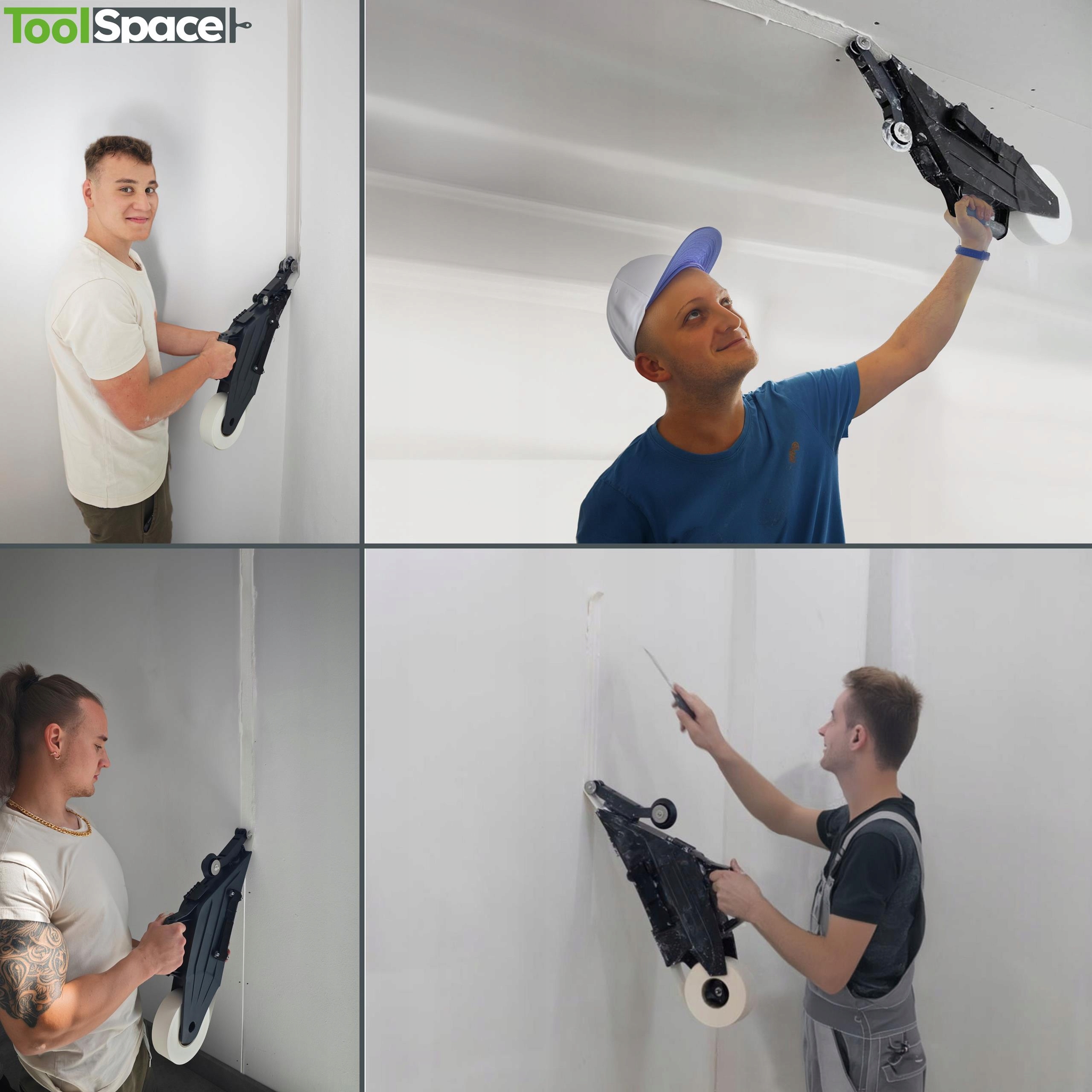 Аплікатор ToolSpace ідеально підходить для використання під час внутрішньої обробки, ремонту та будівельних робіт, пов’язаних із монтажем гіпсокартонних плит. Ідеально підходить для з’єднання дощок у кутах, на стелі та стінах.