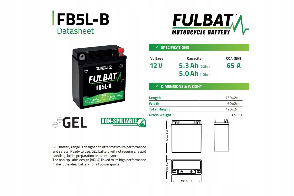 батареї Гель fulbat дозволяє їм досягти втричі кращих характеристик, ніж у звичайні батареї. Забезпечення повільнішої втрати потужності в пенсія, завдяки якому поширюються періоди між звинуваченнями технічне обслуговування. Акумулятор щільно закритий, нам не потрібно турбуватися Немає кислотних витоків.