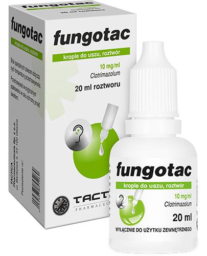 Властивості:Фунготак - препарат у формі вушних крапель з протигрибковими властивостями. Діюча речовина - клотримазол, який відноситься до групи імідазолів. Фунготак бореться із збудником грибкових вушних інфекцій.