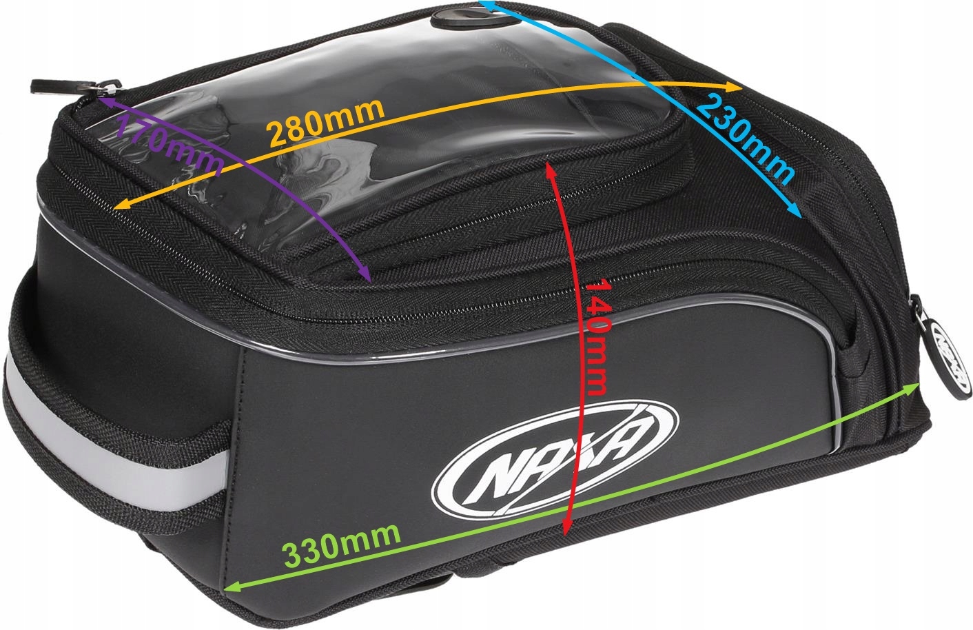 - прикріплюється до резервуара за допомогою 6 магнітів, а сумка додатково має знімні кріпильні ремені