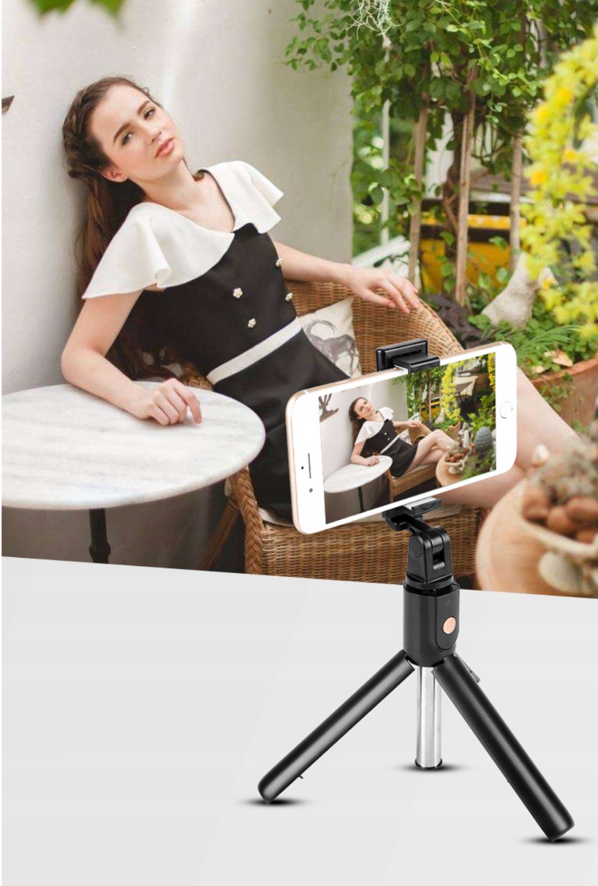 Палиця для селфі зі штативом — це практичний інструмент, який дозволяє зйомки фотографій або записувати відео з більшою стабільністю та зручністю. Палиця для селфі зі штативом — цепортативний пристрій , що складається з телескопічної жердини та триногого триноги. Палиця має регульовану довжину, що дозволяє налаштовувати її на потрібну відстань і кут зйомки.