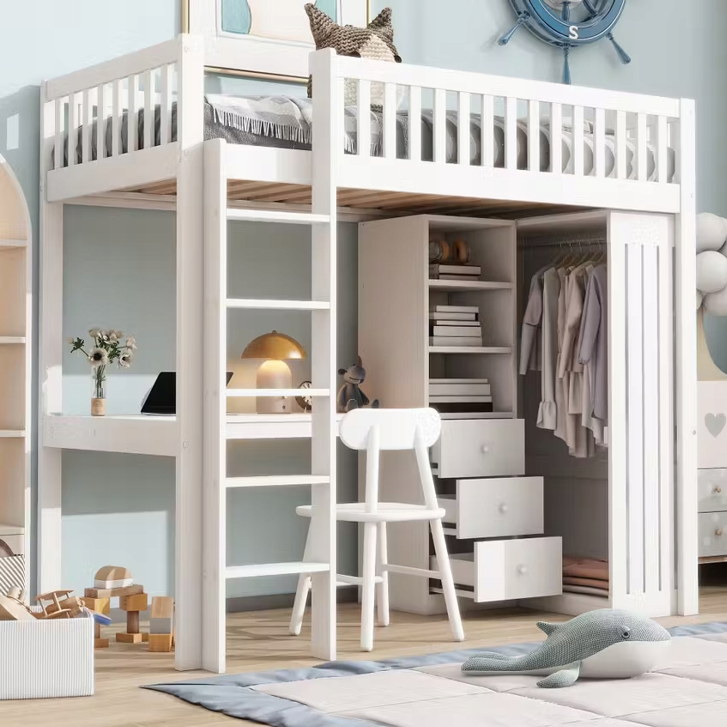 ДИТЯЧЕ ДВОХ'ЯРУСНЕ ЛІЖКО 90X200 З ПИСЬМОВИМ СТОЛОМ, ШАФОЮ, 3 ЯЩИКАМИ ТА СХОДАМИ БЕЗ МАТРАСУ