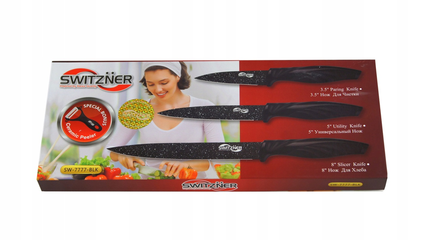 Функціональні кухонні ножі + набір шкірки 4 El Switzner SW-7777 BLK