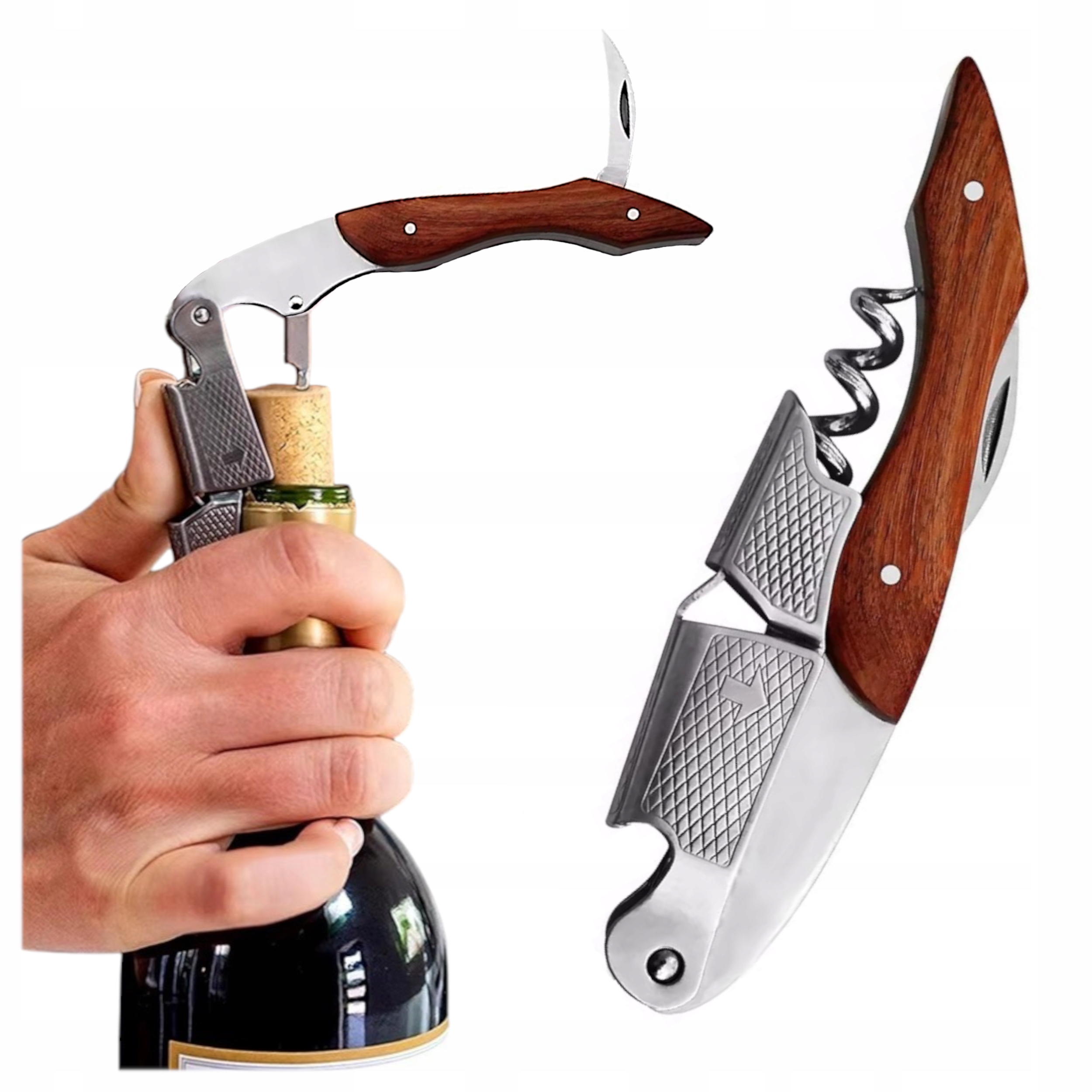 Функціональний штопор 3в1 з дерев'яною обробкою Трибушон Сомельє