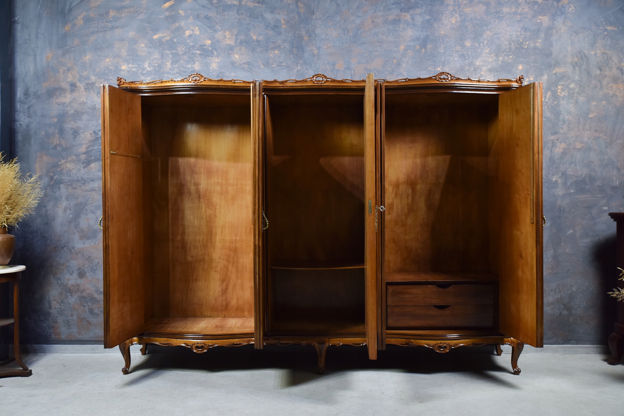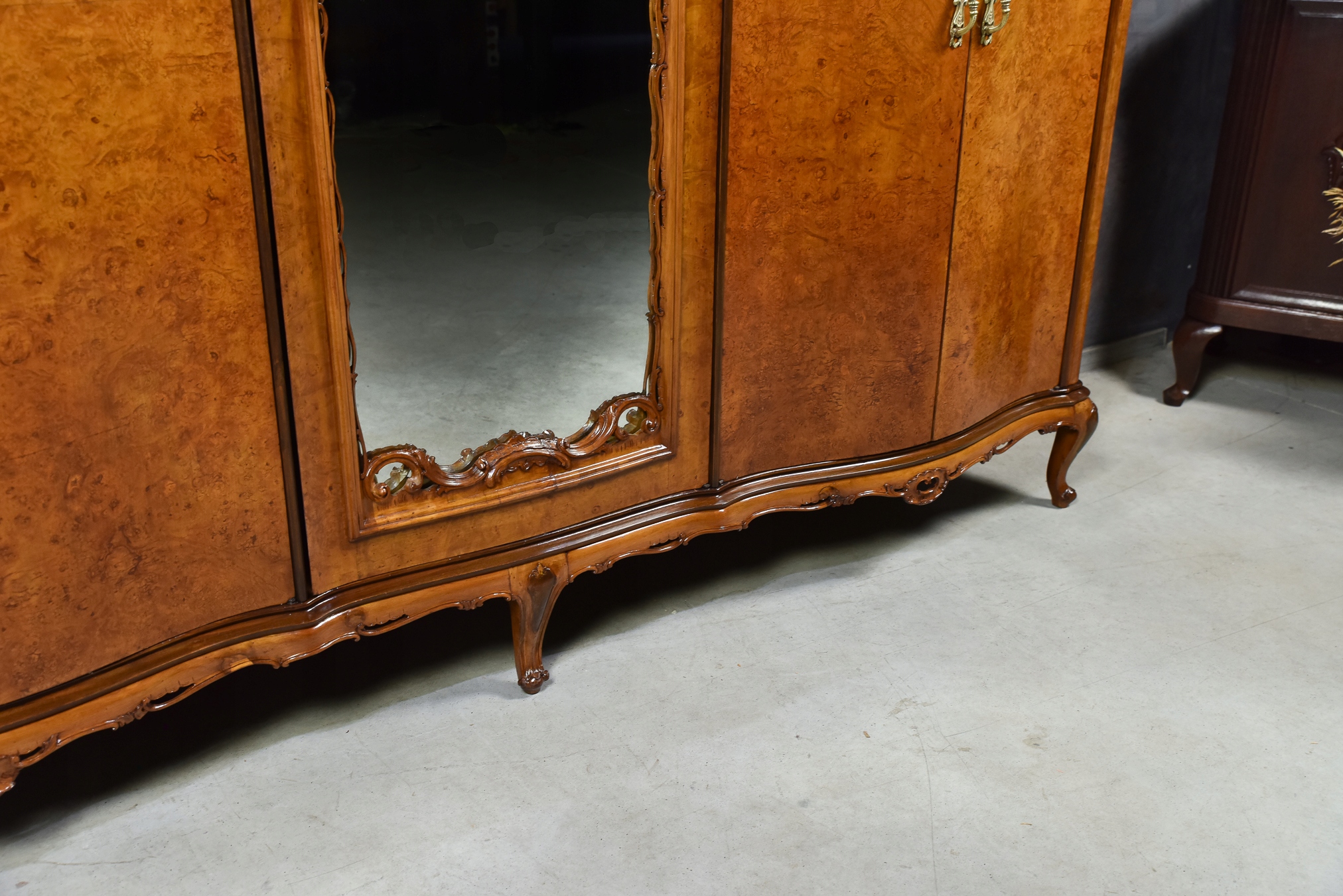Представляємо елегантну п'ятидверну шафу-купе з горіхового дерева в стилі нео-рококо. Меблі 1950-1960-х років.