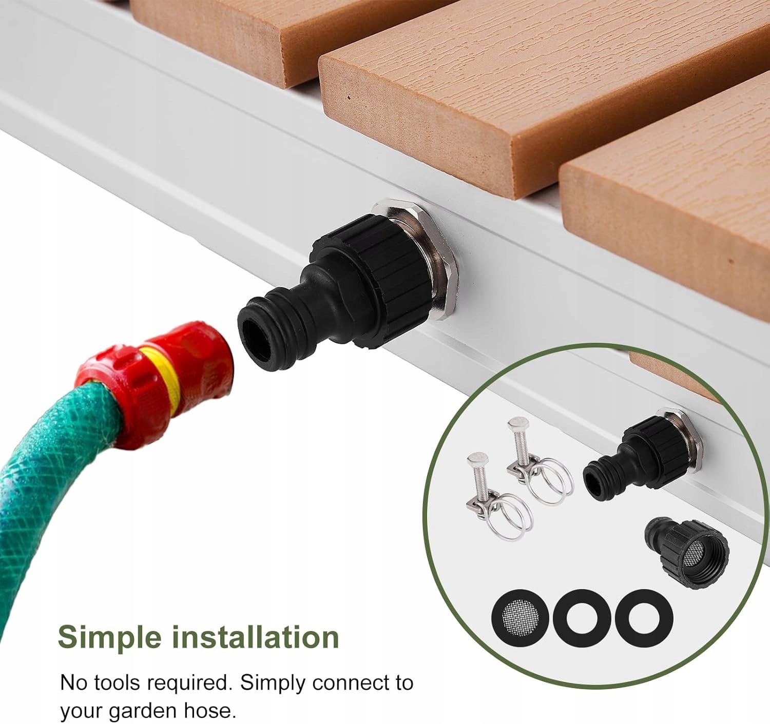 Підходить до будь-якого стандартного садового шланга. Він не вимагає складної збірки, тому ідеально підходить для швидкого використання в саду та під час поїздок.