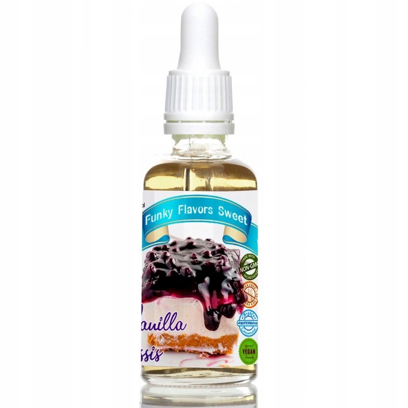 Funky Flavors Sweet Vanilla Cassis 50 мл це підсолоджений харчовий ароматизатор без додавання цукру! Ароматизовані краплі ідеально підходять для дієтичної кухні - як доповнення до тортів, вівсяних пластівців, домашнього морозива, коктейлів, печива, омлетів, млинців і багатьох інших смаколиків! Funky Flavors Sweet вирізняється інтенсивним солодким смаком і ароматом ванілі та чорної смородини!