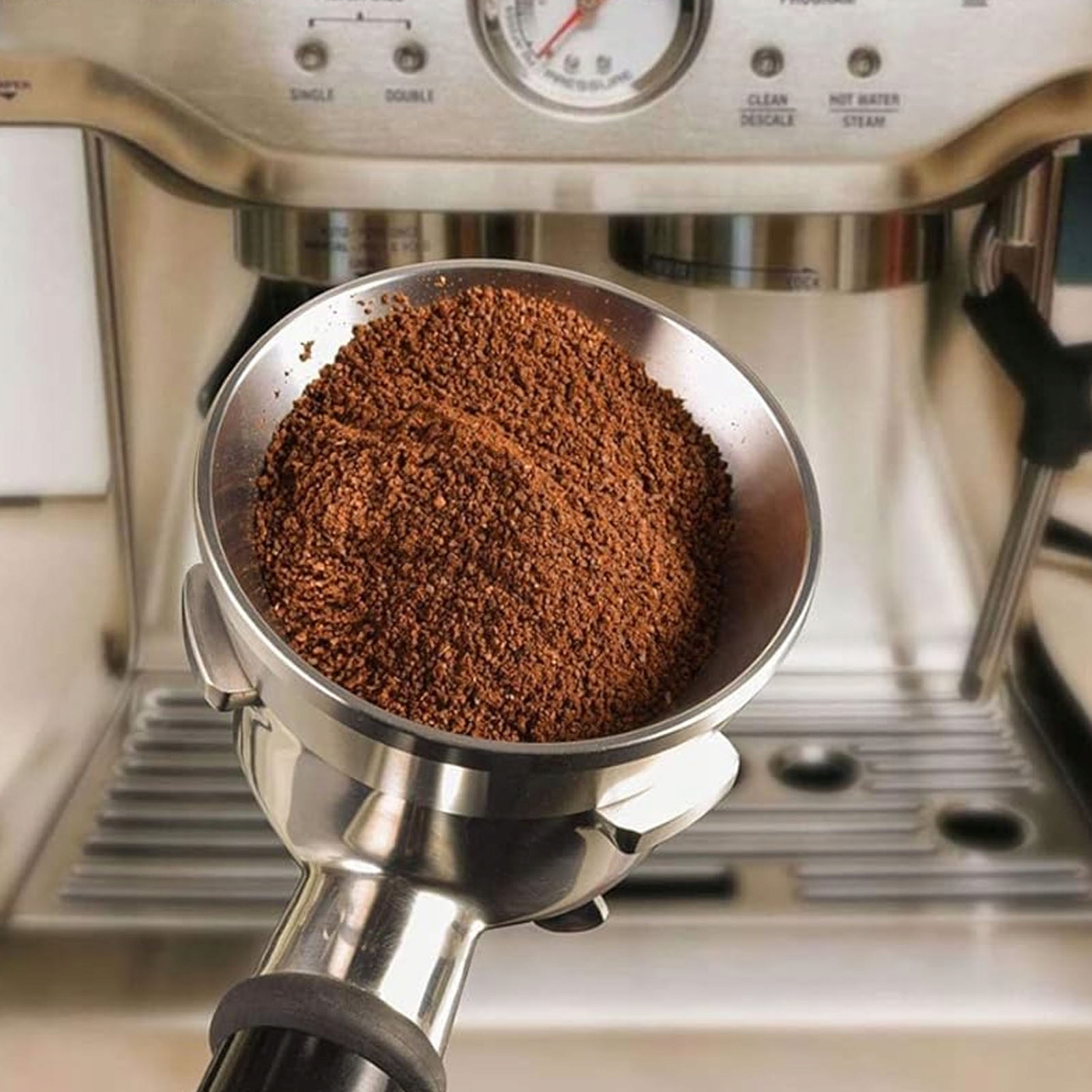 3. Міцне магнітне кріплення: це кільце для дозування кави надійно кріпиться до портафільтра за допомогою магнітної адсорбції, що дозволяє вивихнути одну руку.