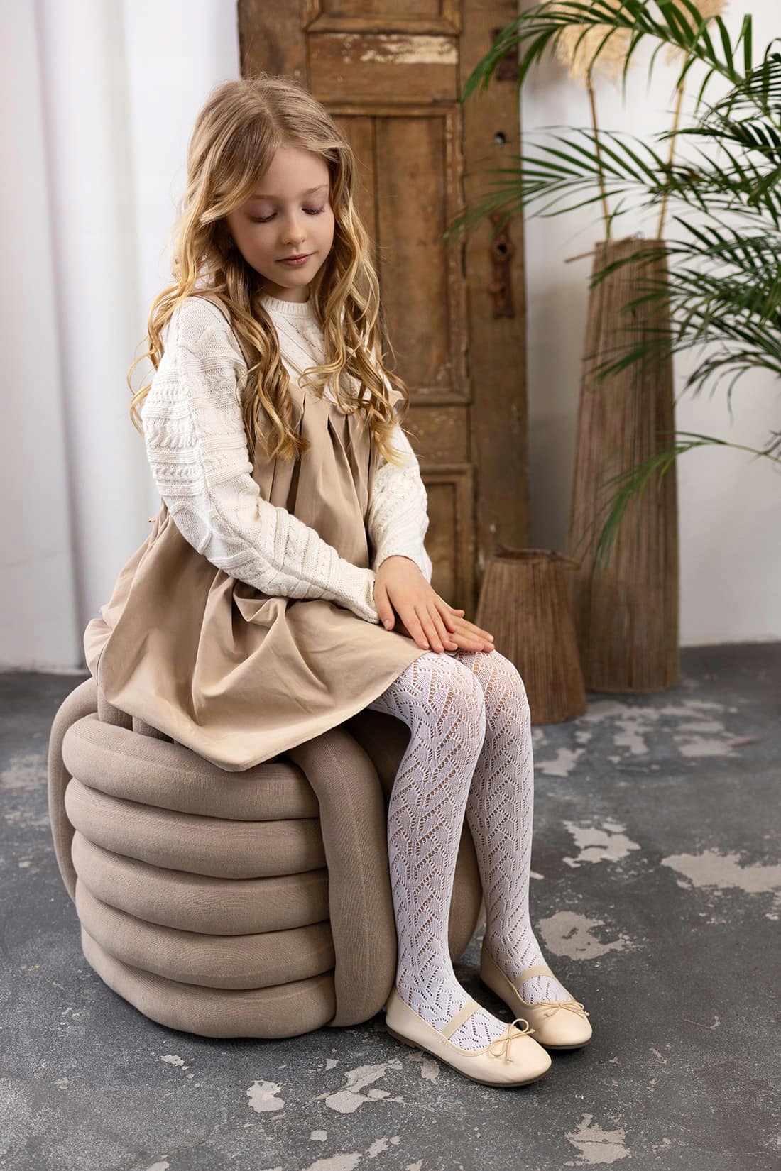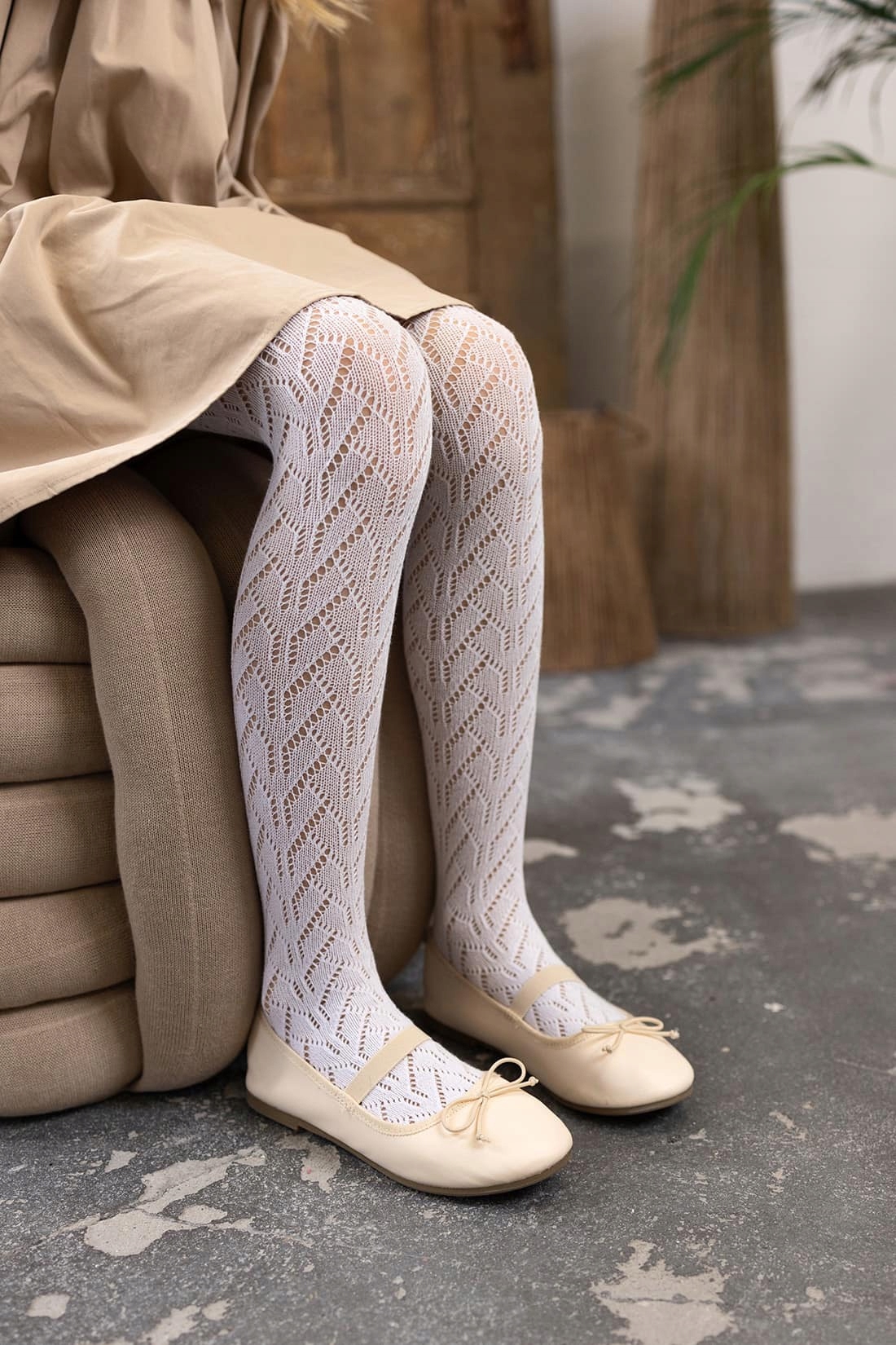 Завдяки класичному білому кольору ці колготки ідеально підходять для сімейних свят, школи та особливих заходів. Ажурний візерунок додасть будь-якій укладці легкості та дівочого шарму.