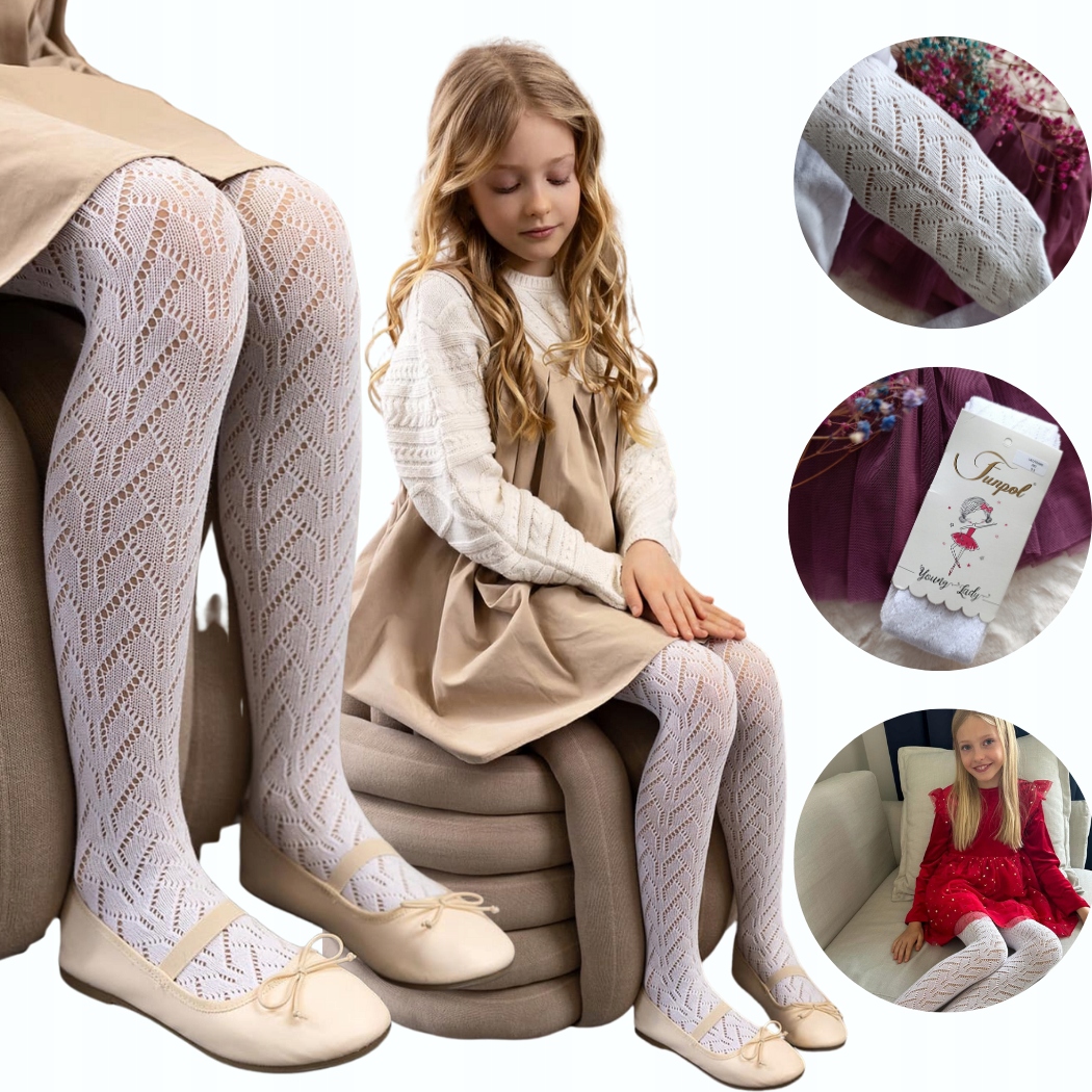 FUNPOL Білі ажурні бавовняні колготки для дітей 3-5 років 98 104 110