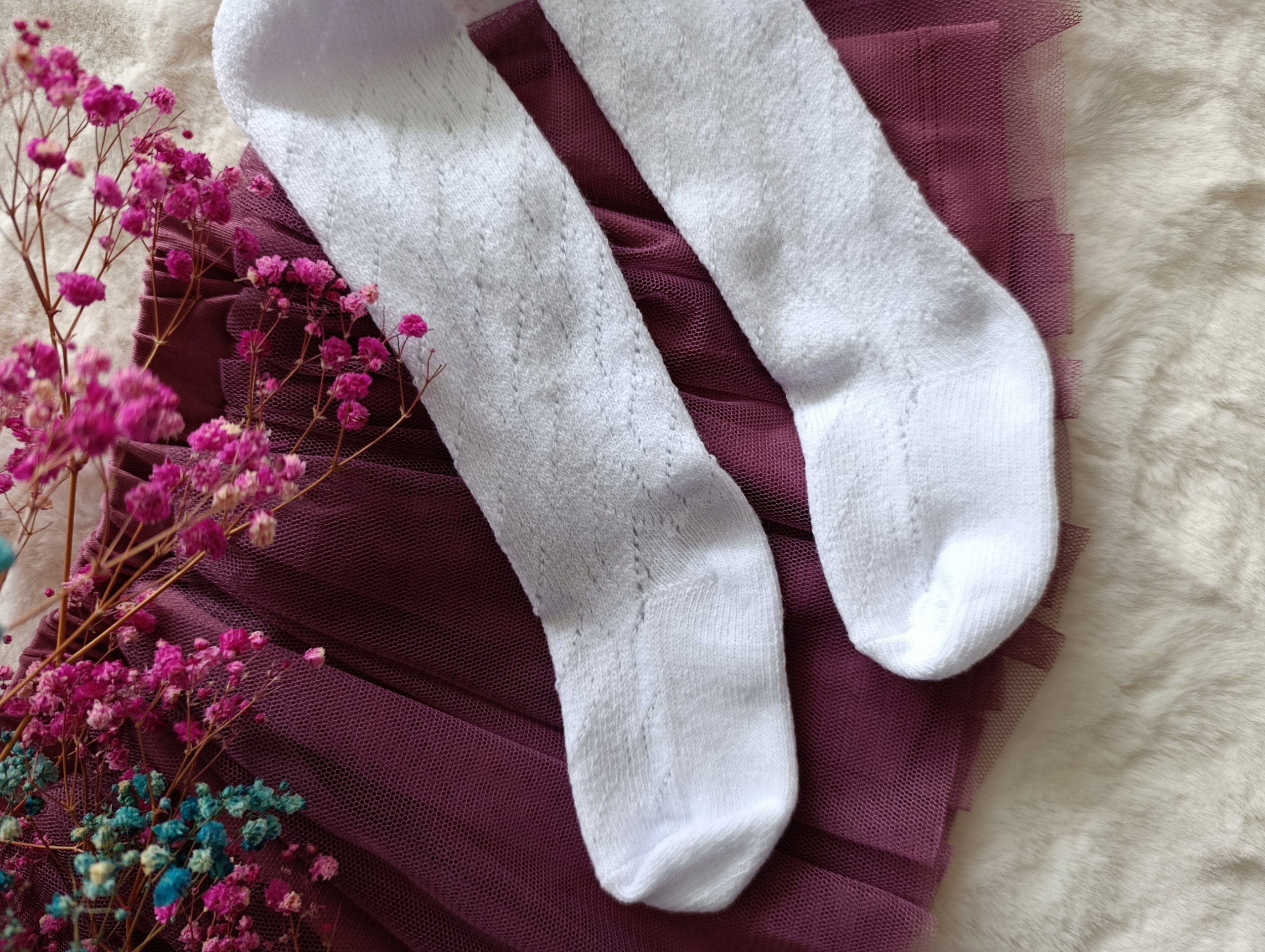Колготки дитячі для дівчинки, біла бавовна, ажурні колготки, колготки