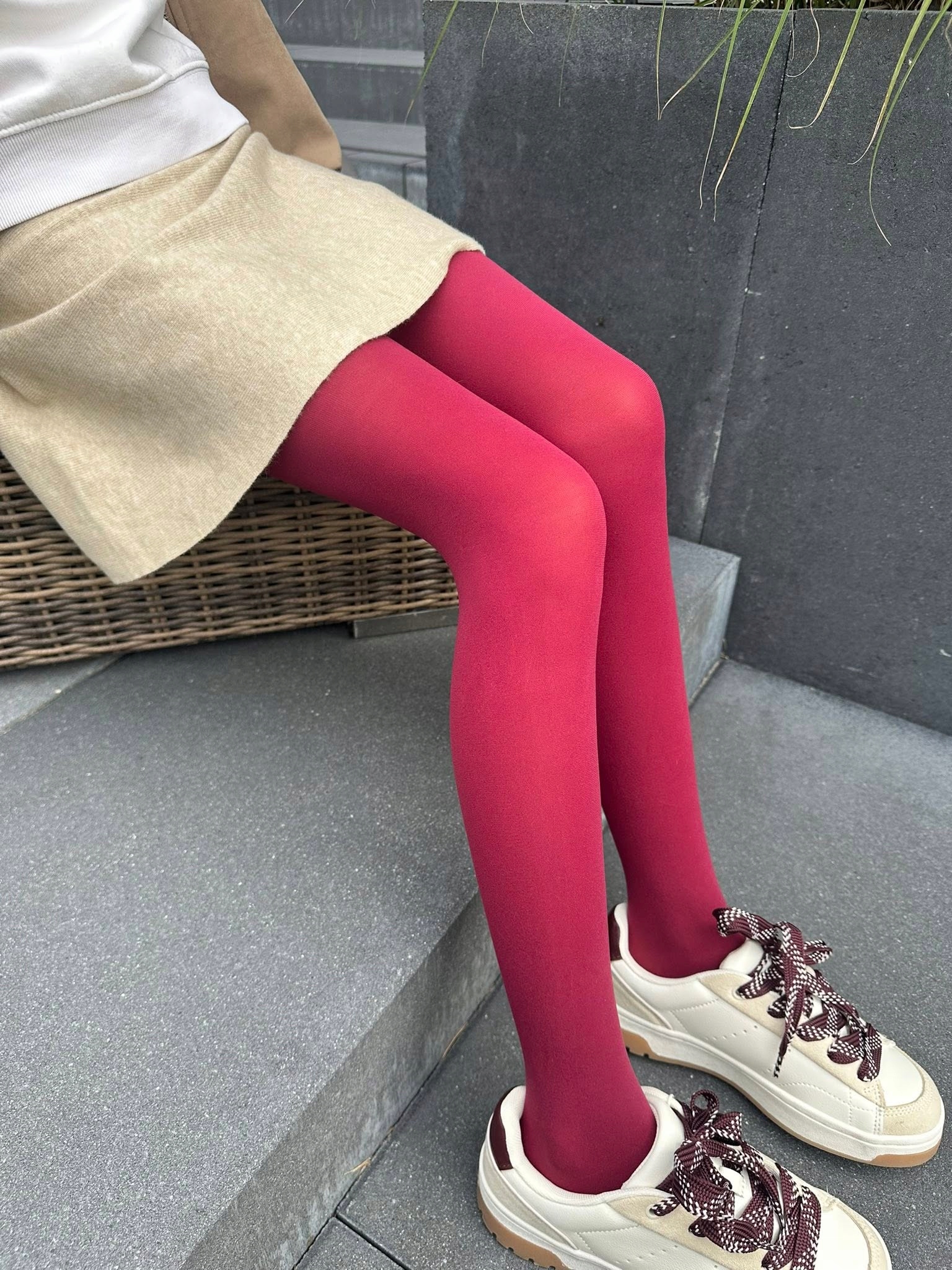 Колготки FUNPOL дитячі червоні бордові, гладкі, мікрофібра 3D, 50 ден, розмір 146-152