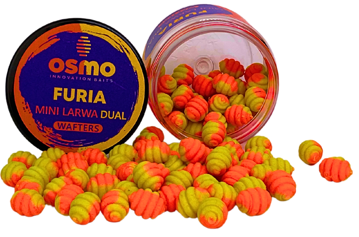Osmo Furia - це перша подвійна, тобто двоколірна приманка в пропозиції Osmo baits. Це ще один wafters в характерній формі личинки. Приманка кричить красивими, яскравими кольорами - жовтим і помаранчевим, які чудово видно під водою, тим самим привертаючи увагу риби. Крім того, фурія була оснащена цікавим і характерним, злегка стійким ароматом, який покликаний імітувати запах їжі, яка деякий час пролежала на дні акваріума, тобто безпечна для вживання рибою. Поєднання кольорів та ароматів створює ще одну ефективну та унікальну приманку, яку варто мати на своїй полиці.
