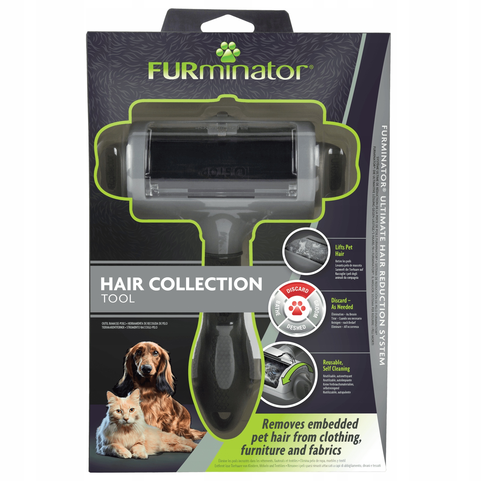 Перш ніж використовувати інструменти, уважно прочитайте всі інструкції та поширені запитання. Використовуйте інструмент для збору волосся FURminator® тільки за призначенням. Бренд FURminator® пропонує низку засобів, які допомагають зменшити линяння тварин, а також багато аксесуарів для чищення шерсті в домашніх умовах.