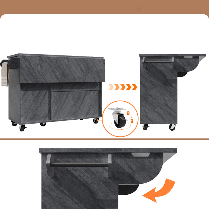 - Металевий опорний стрижень вішалки для рушників і ручки шафи виготовлені з високоякісного металу, який є естетичним і стійким до іржі. Весь кухонний візок виготовлений з високоякісного ДВП середньої щільності, що робить його міцним і простим у чищенні. П'ять коліщаток, що обертаються на 360 градусів (включаючи два з замками), забезпечують гнучке використання в різних місцях.