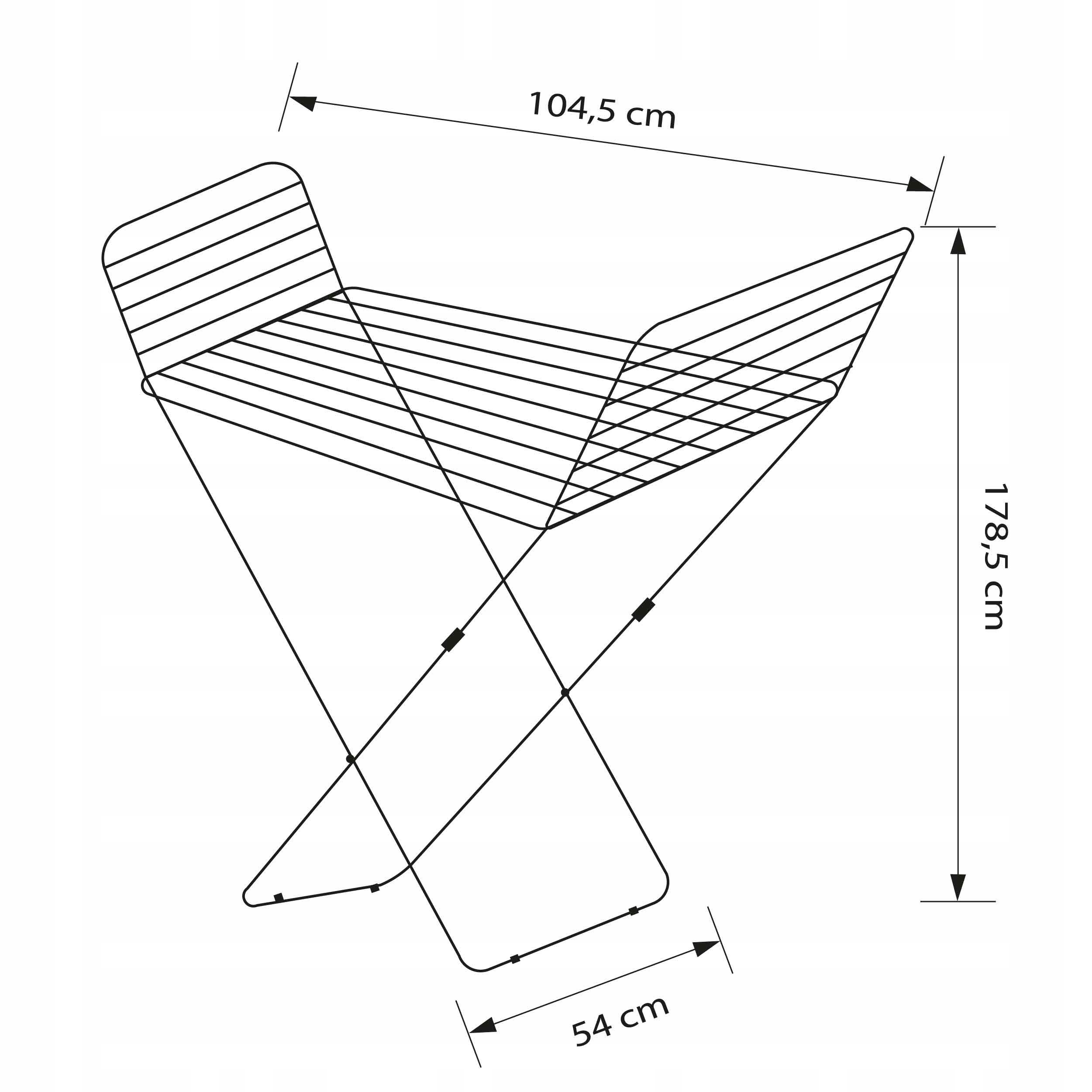 Він оснащений складними крилами і великою кількістю смуг, завдяки яким на нього можна розвісити велику кількість білизни. Просторі крила дозволяють повісити більші предмети, напр. скатертини, постільну білизну або покривала.Сушильна машина також має заклепані петлі та нековзні накладки для ніг, щоб запобігти перекиданню.