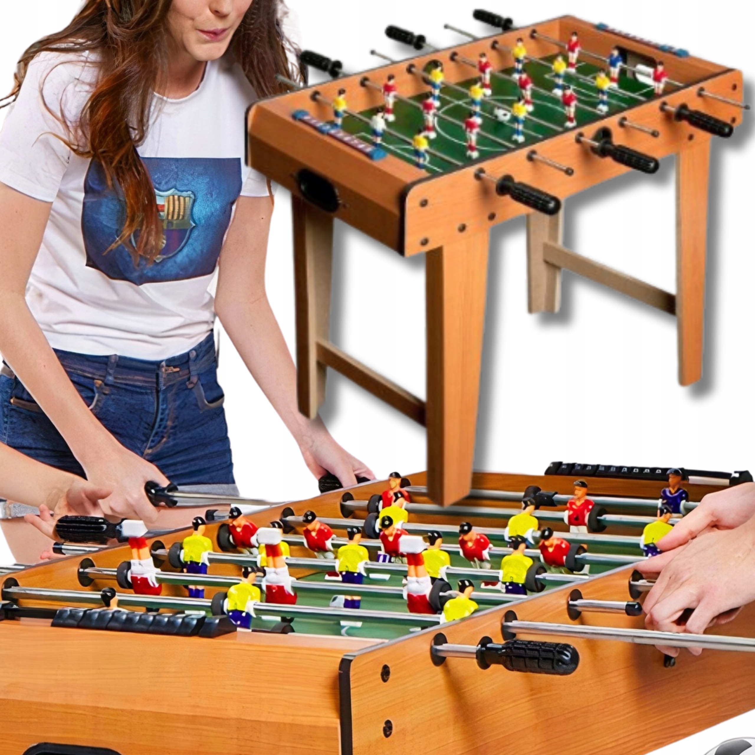 - Велика композиція гравців та 2 м'ячі -в наборі ви знайдете аж 18 барвистих гравців, що дозволить вам організувати повноцінні команди та ще більш захоплюючу гру. Крім того, ви отримаєте 2 добре збалансовані кульки, які забезпечать рідкий та динамічний курс гри.