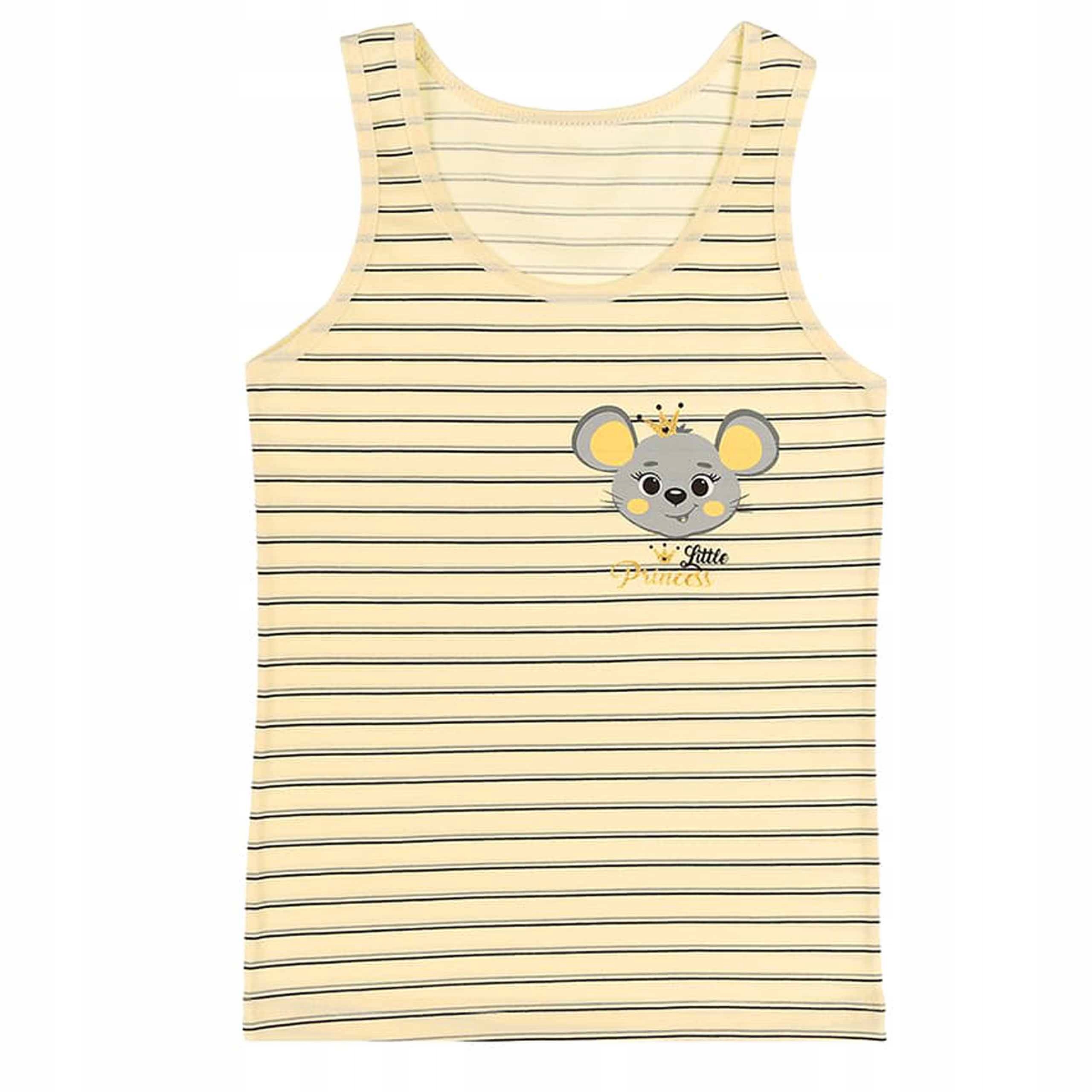 Футболка лимонного кольору в смужку. Збоку кумедна мишка з короною. Мерехтлива корона - золотий блиск. Ідеально підходить для зими та літа.