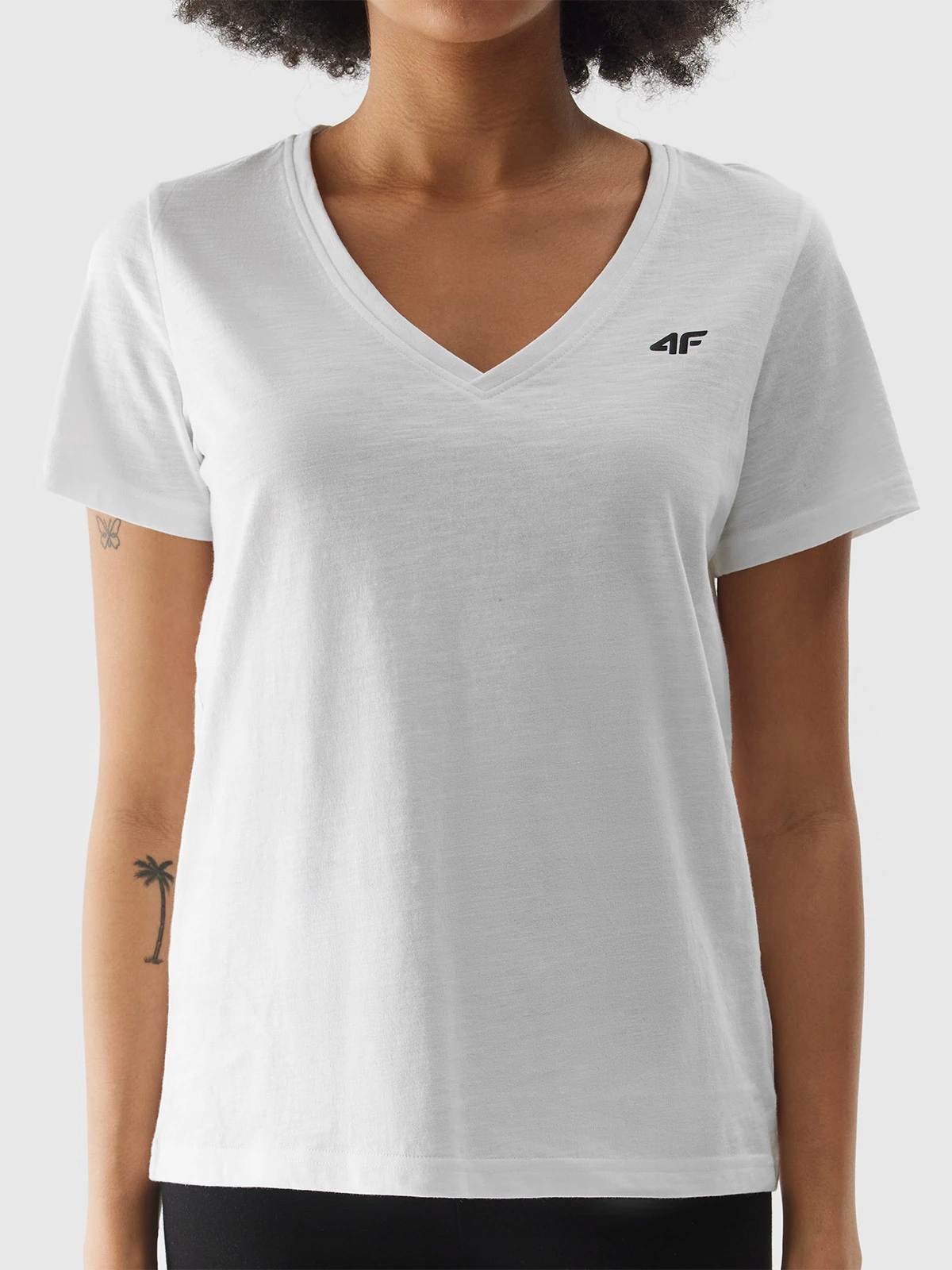 ФУТБОЛКА 4F, ОДНА БАВОВНА, ЖІНОЧА ФУТБОЛКА З V-подібним вирізом - біла, розмір XS