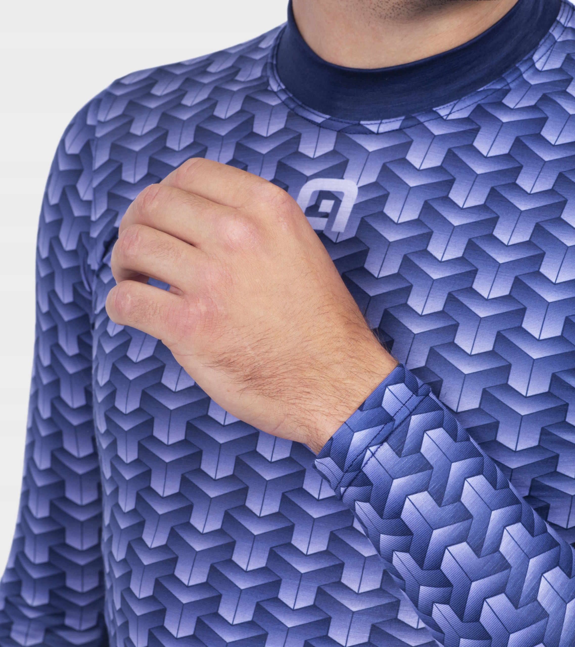 Alé Cycling Cubes- це термофутболка з пряжіPrimaLoft®, яка забезпечує максимальний комфорт, тепло та повітропроникність. Крім того, цей матеріал водонепроникний і завдяки своїй структурі ефективно відводить вологу від тіла. Футболка має низький комір, який запобігає проникненню холодного вітру під блузку. Цікавий дизайн додає футболці унікальний характер.