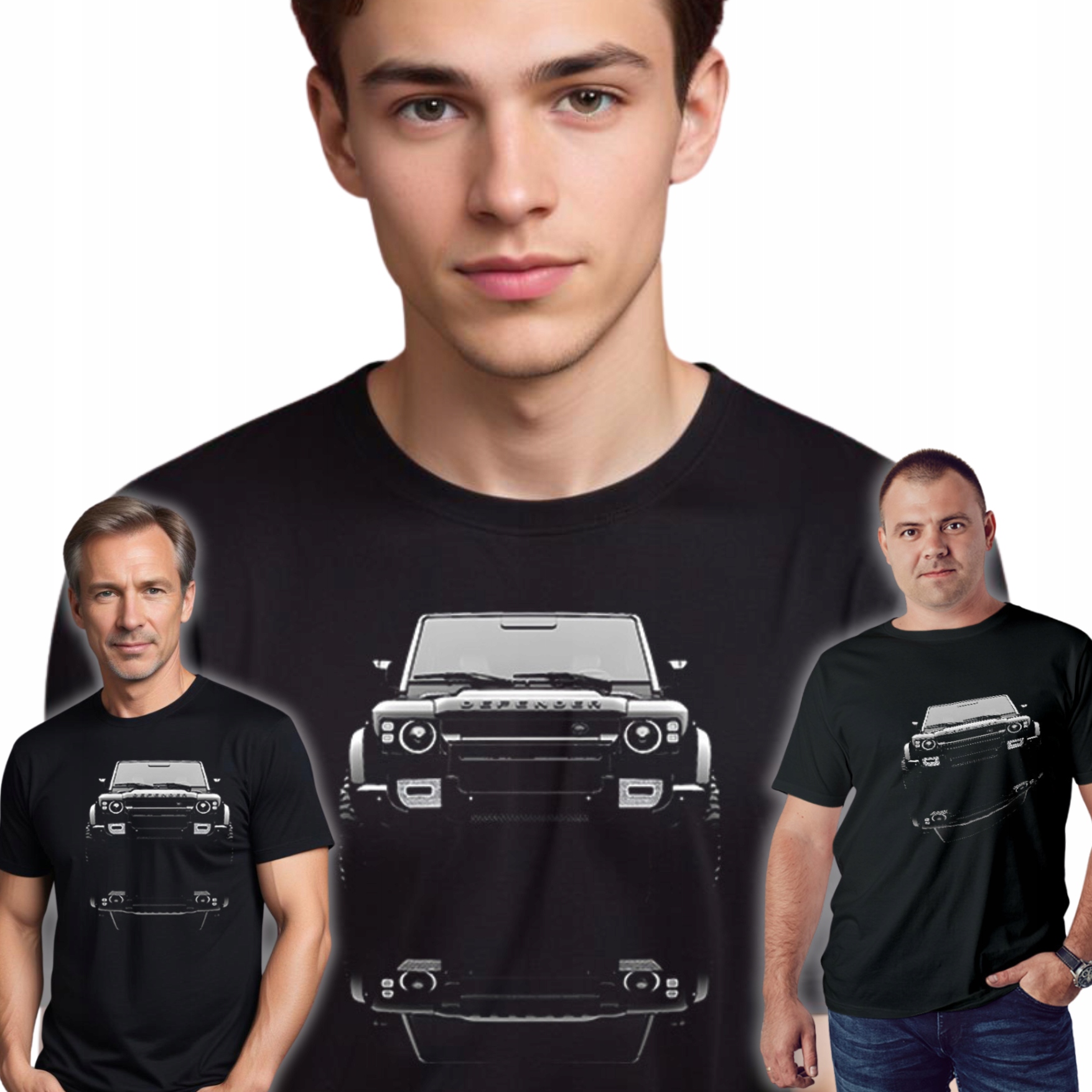 Чоловіча футболка з принтом Land Rover Defender - чорна, 100% бавовна, унікальний малюнок автомобіля - від XS до 4XL