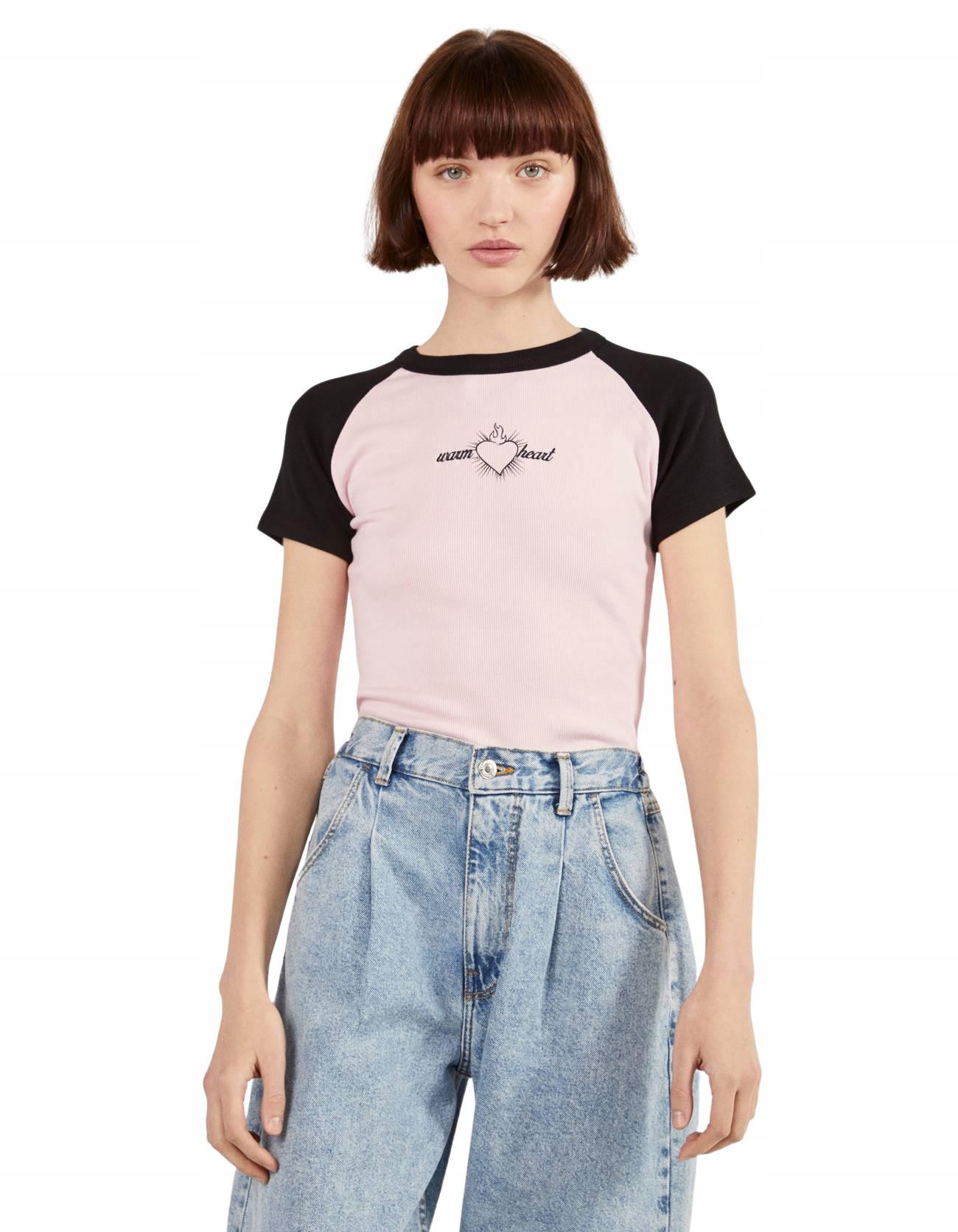 ФУТБОЛКА BERSHKA В РУБРИЧКУ КОНТРАСТНА КРИШКА DDS__XS