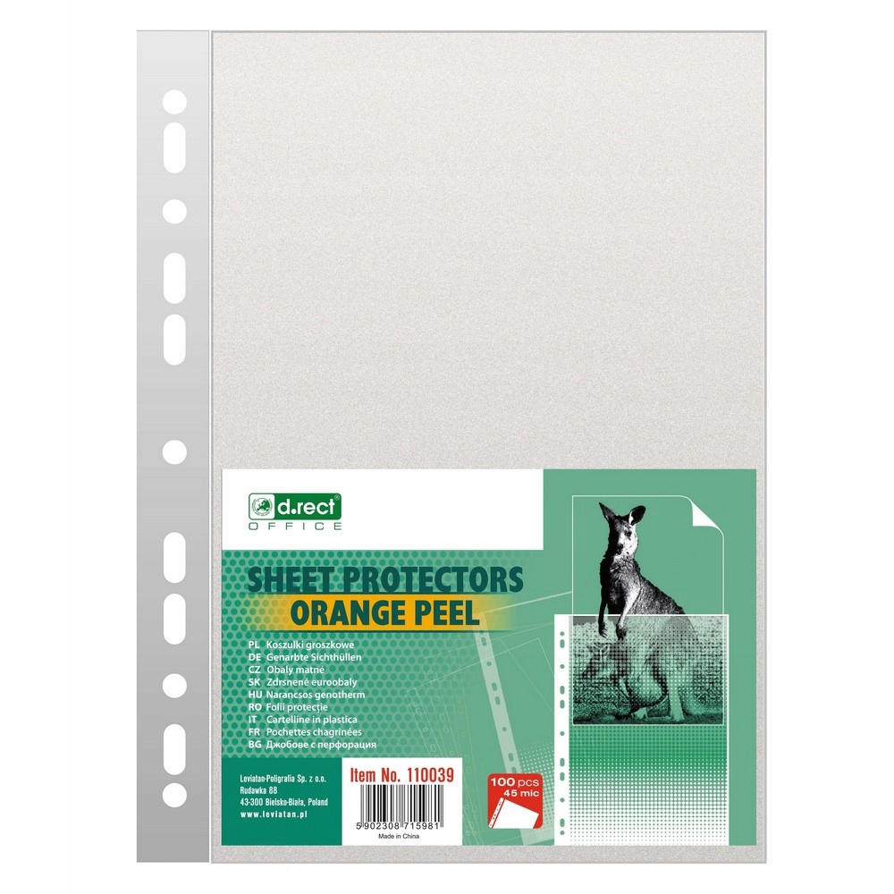 Втулки, призначені для зберігання документів формату А4. Виготовлений з горошини фольги товщиною 45 мкм. Вони захищають документи від бруду та пошкоджень. Посилений ремінь з універсальною перфорацією дозволяє кріпити футболки до будь-якого типу підшивки. Відкритий зверху. В упаковці з фольги 100 шт. футболок.