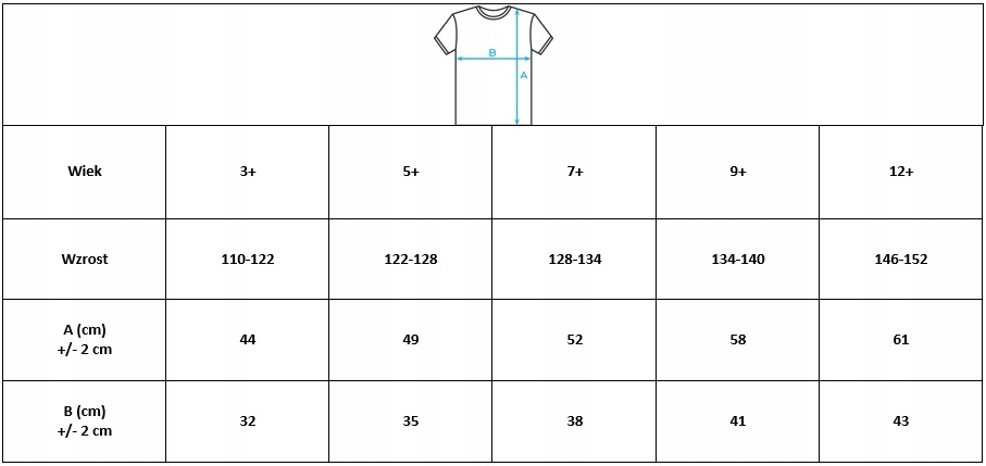 - Розміри футболки для віку дитини: 3+ 5+ 7+ 9+ 12+