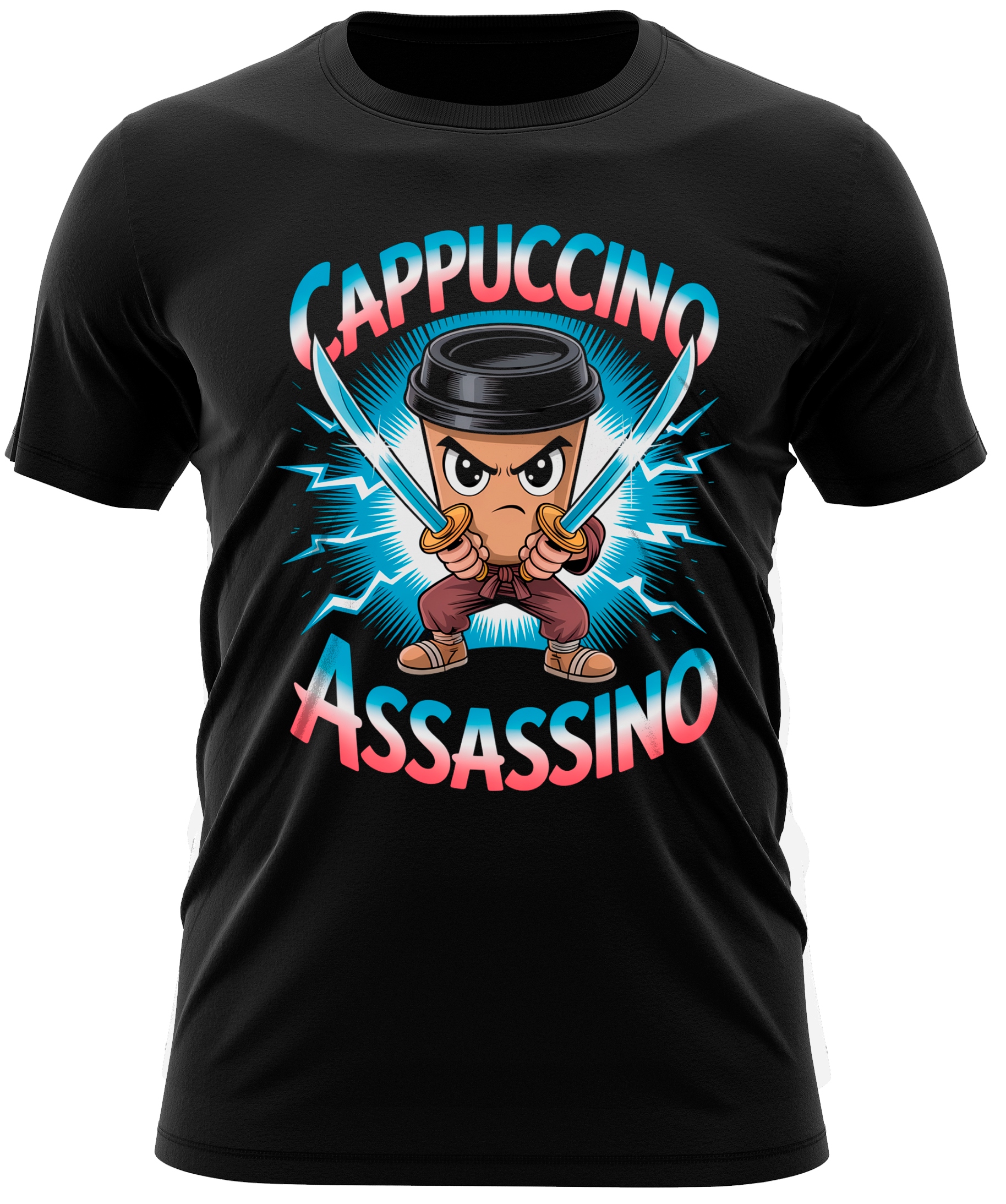 Футболка Cappuccino Assassino — обов’язкова річ для юних шанувальників мемів, які люблять вірусний гумор і хочуть виділятися серед шкільних натовпів! Це не просто одяг – це кумедний прояв креативності, енергії та дитячої уяви на найвищій швидкості!