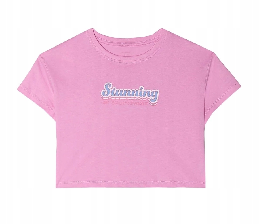 Виготовлений із 100% м’якої органічної бавовни, він забезпечує повний комфорт при носінні та чудову повітропроникність. Короткий кроп-топ і вільний оверсайз крій надають йому модного, спортивного характеру. Спереду є принт «Stunning 4F Sportswear», який підкреслює оригінальний стиль бренду 4F. Ідеально підходить для школи, прогулянки чи літніх днів.