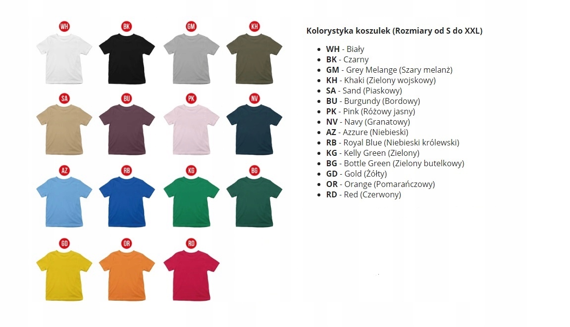 - Доступні розміри футболок у цій пропозиції: S M L XL XXL