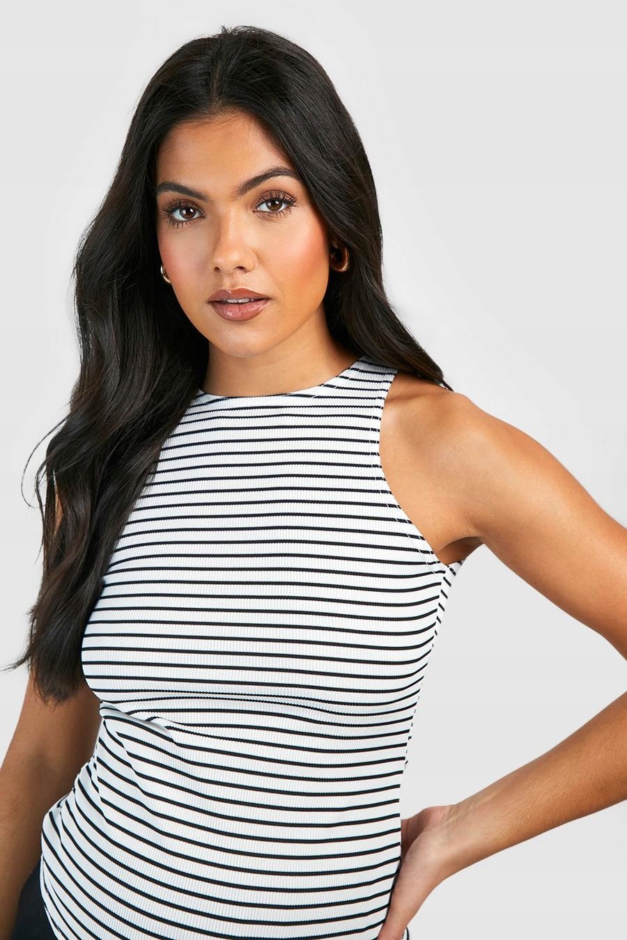 ФУТБОЛКА ДЛЯ ВАГІСЛІВ В СМУЖКУ З БІЛИМ ВИЗЕРУНКОМ BOOHOO 42