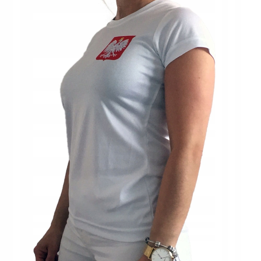 - Біла футболка з гербом, на спині напис Польща