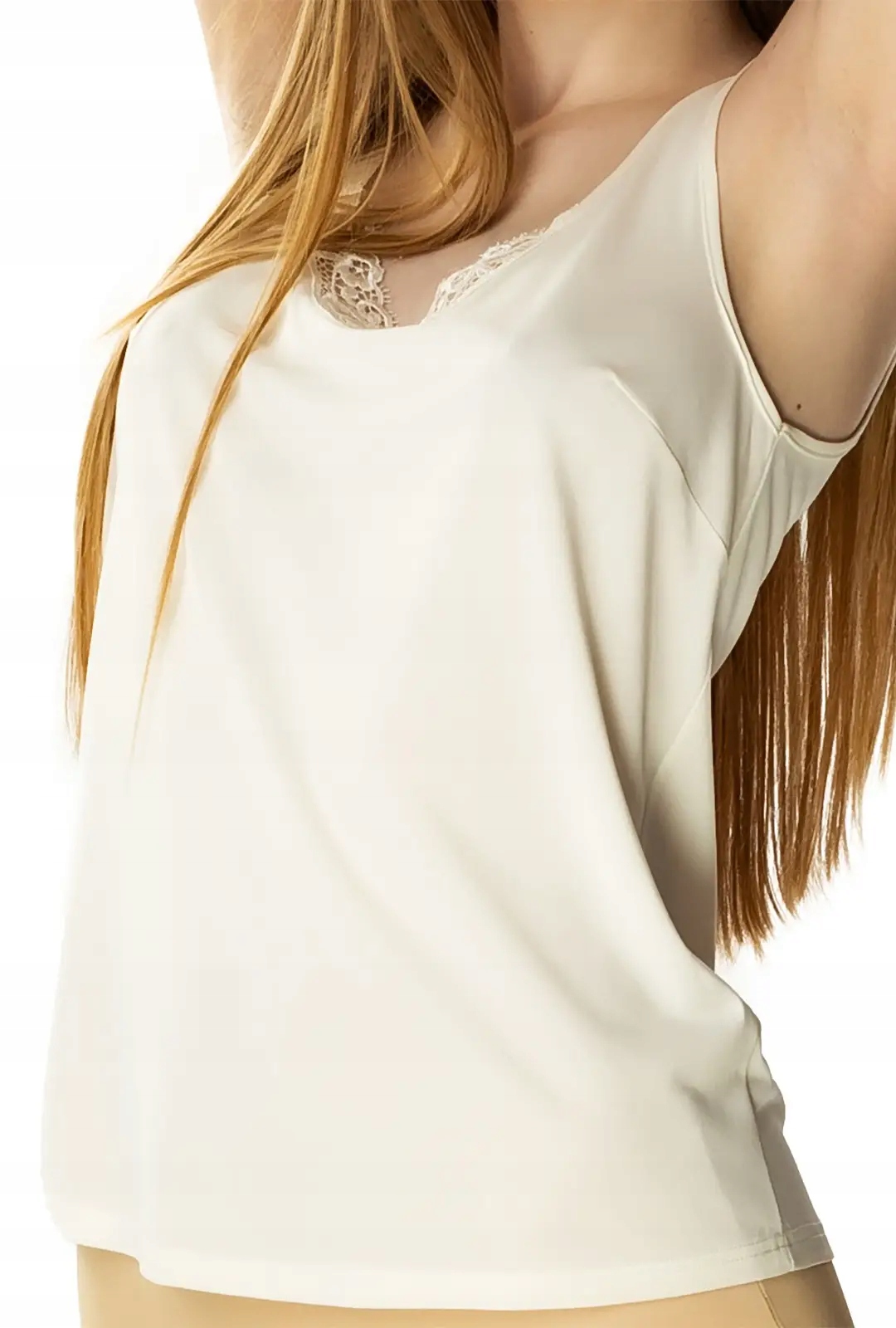 Красива жіноча футболка Karina на широких лямках - основа кожного гардеробу. Красива майка з мереживом на декольте і квітковим візерунком ідеально задовольнить потреби навіть найвимогливішої жінки.