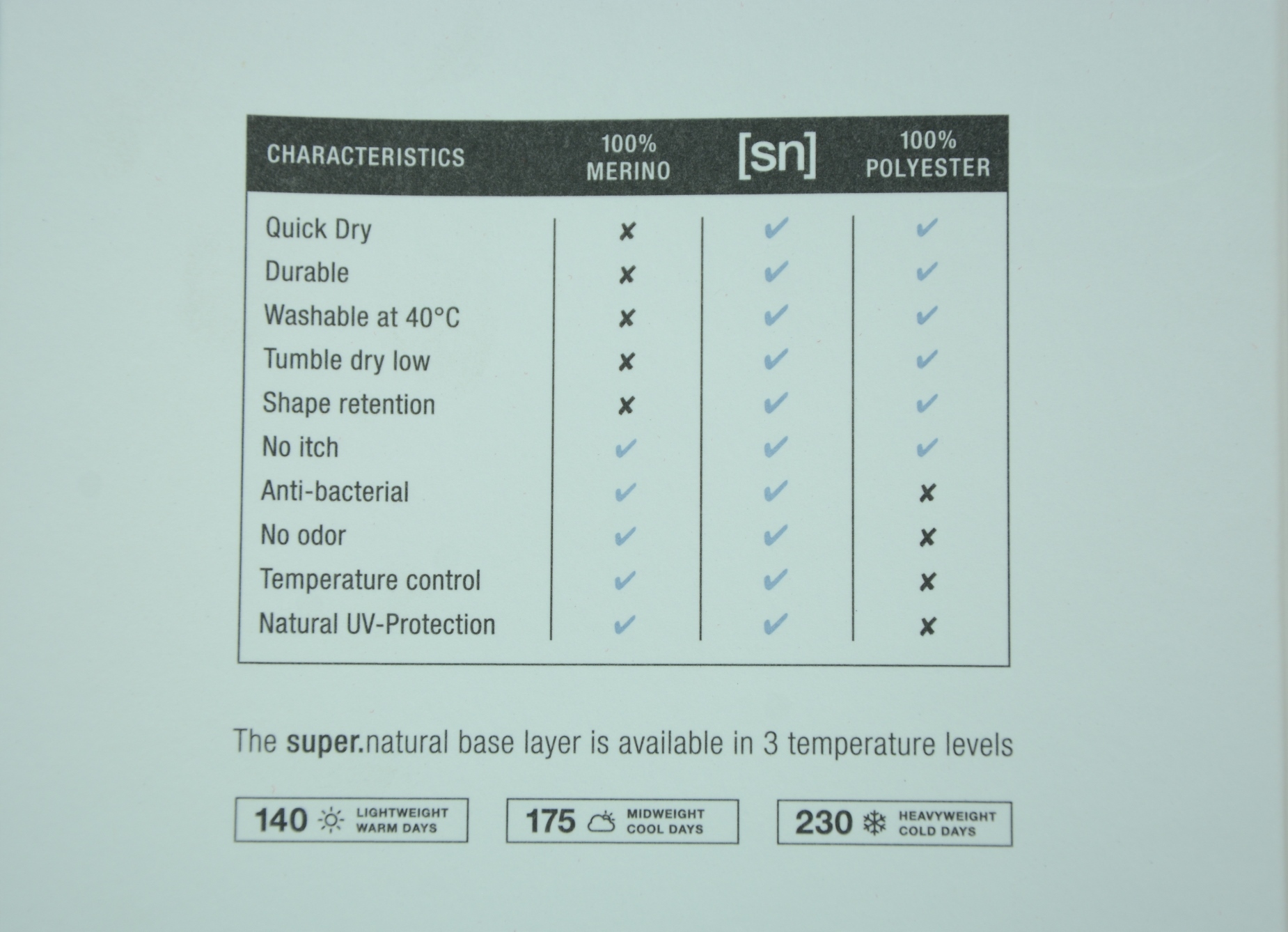 Super.Natural - Німецький виробник одягу з комбінації мериносової вовни та синтетичних волокон. Одяг поєднує в собі найкращі характеристики обох технологій: