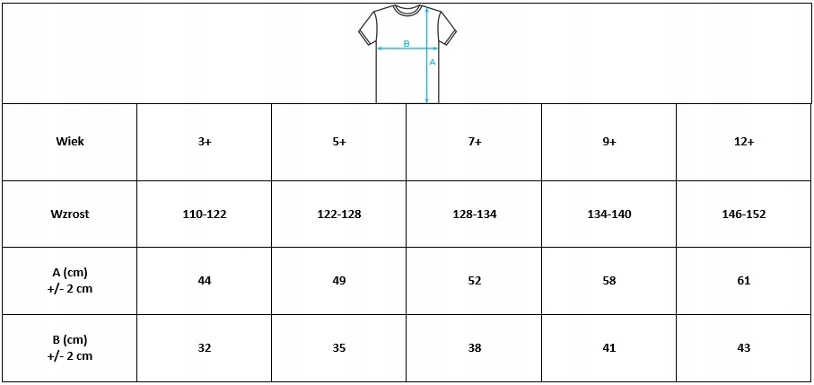 - Розміри футболок для віку дитини: 3+ 5+ 7+ 9+ 12+