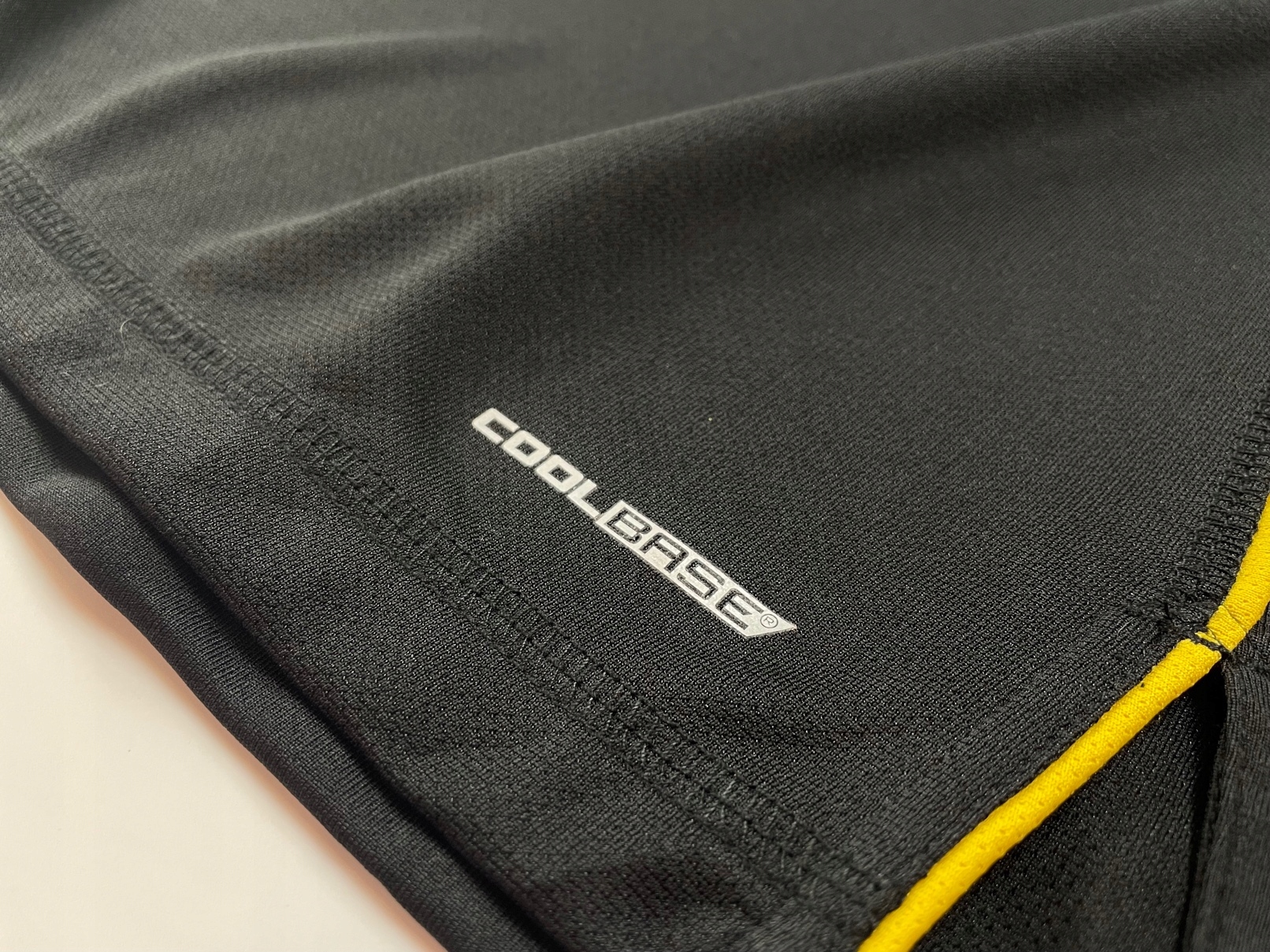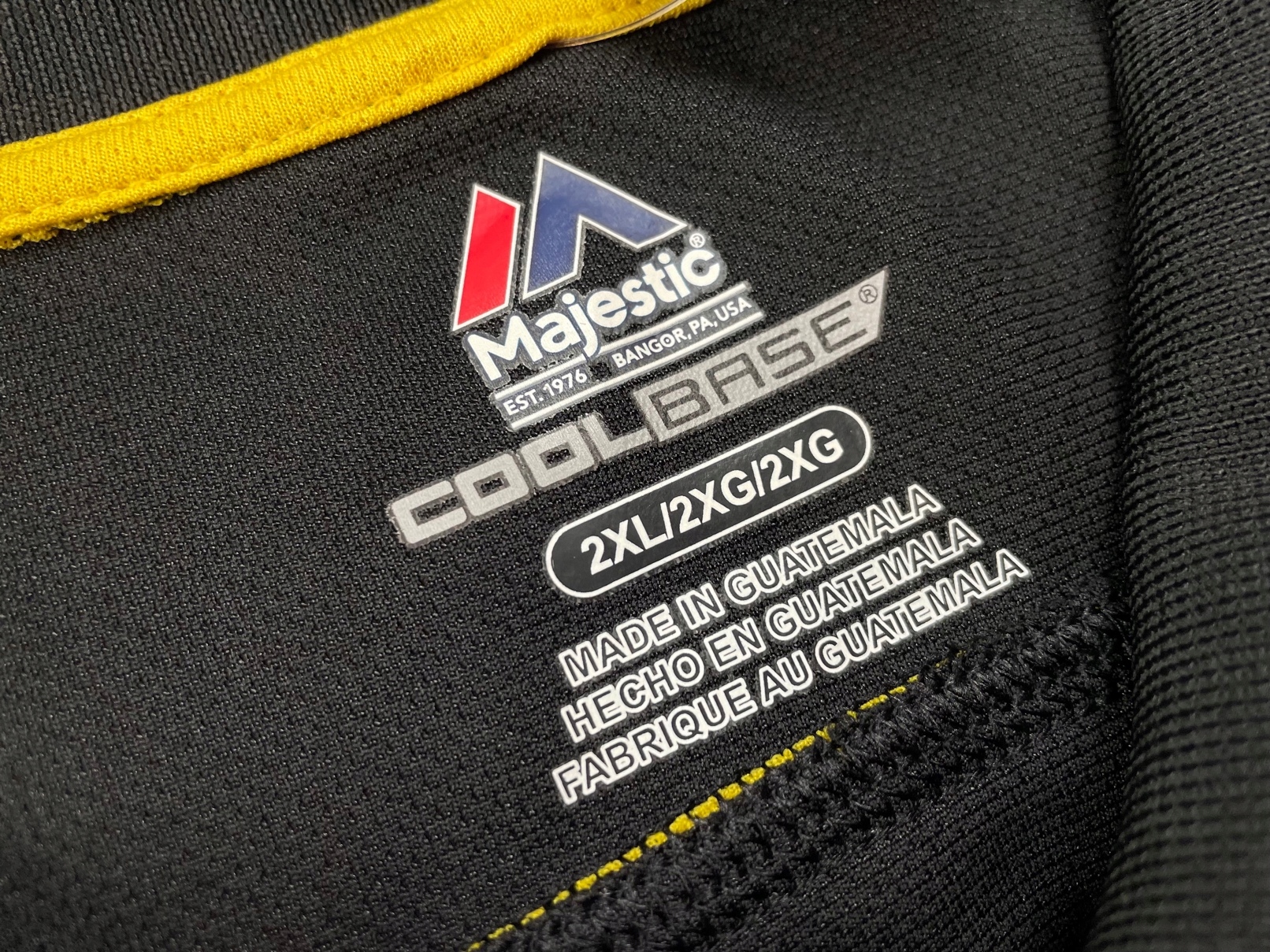 - Сорочка поло від Majestic. Це класичний чорний колір. Спереду на ньому є принт 50 SUPER BOWL. Футболка має жовті вставки з боків. Має короткі рукави та комір, що застібається на гудзики. Має розрізи з боків.