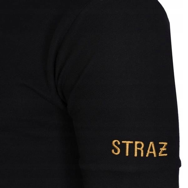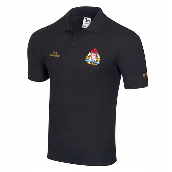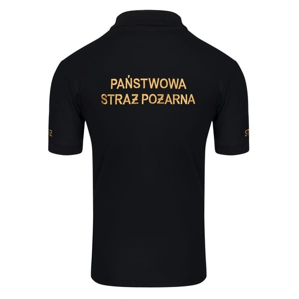Спереду вишитий логотип PSP, вишитий золотий напис STRAŻ на рукавах, напис PAŃSTWOWA STRĄ POŻARNA на спині.