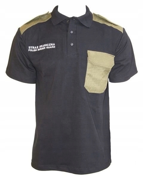Чорна прикордонна загарбна т -сорочка з арматурою на плечах, виготовлених з тканини Ripstop у хакі. На передній частині після висоти грудей - напис "Польська прикордонна охорона", виготовлена з машинної вишивки, біла нитка. Для ручки, виготовленої з тканини Ripstop у кольорі хакі.
