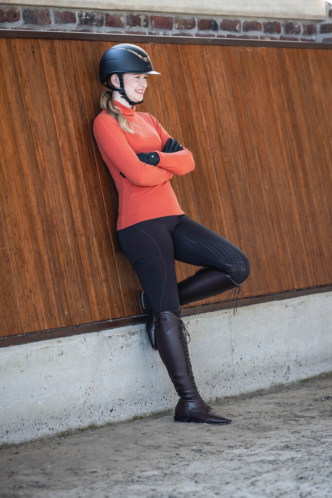 Блуза-водолазка HKM EVA – ідеальний вибір для холодних днів. Виготовлений з еластичної тканини, ідеально сидить по фігурі, забезпечуючи повну свободу рухів під час верхової їзди та повсякденного носіння.