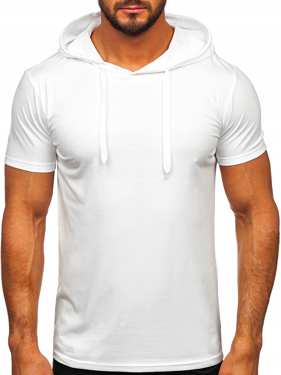 Біла чоловіча футболка без принту з капюшоном Bolf 8T89, розмір XL