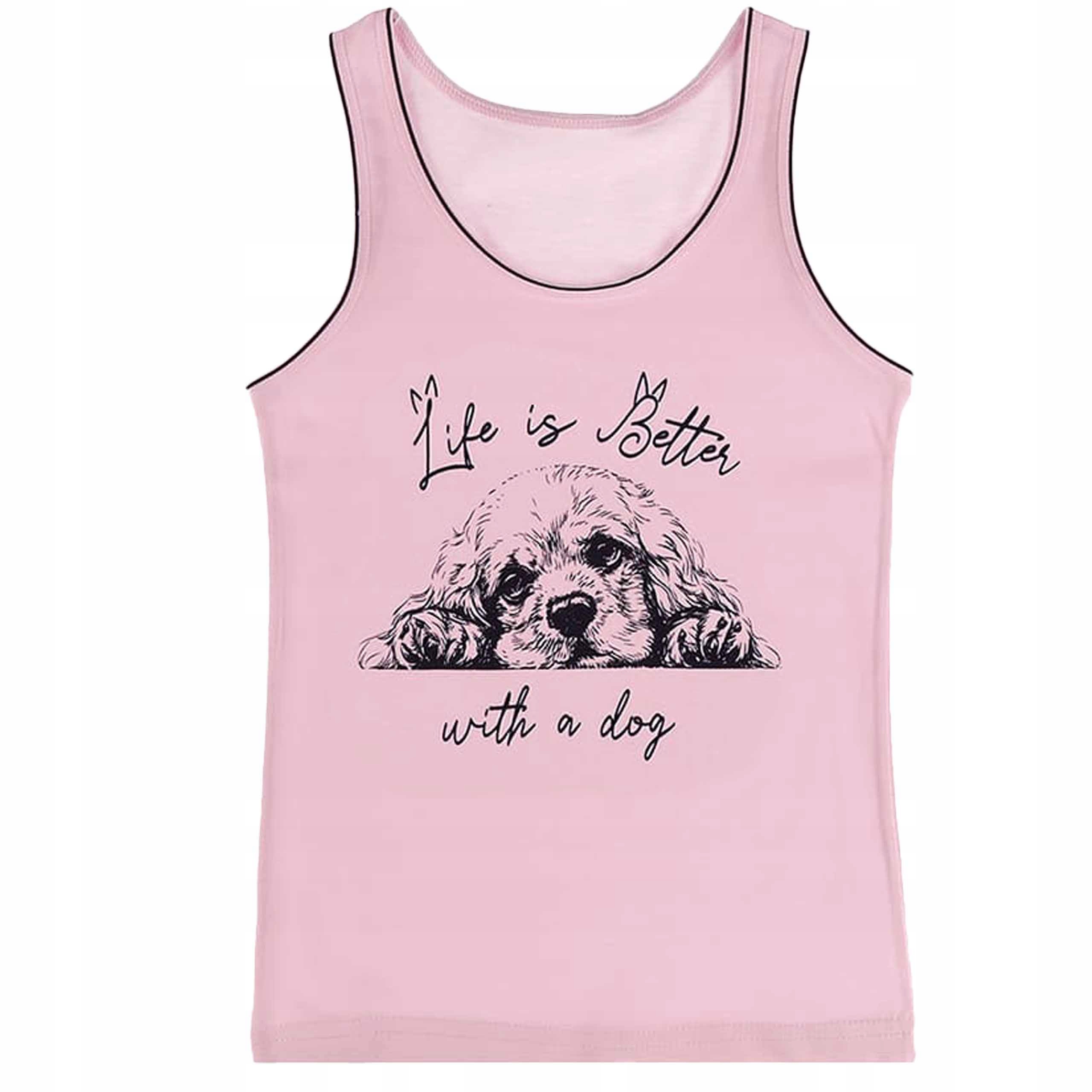 Рожева футболка на широких лямках. Футболка, оброблена тонкими еластичними стрічками. Мила собачка спереду. Ідеально підходить для зими та літа.