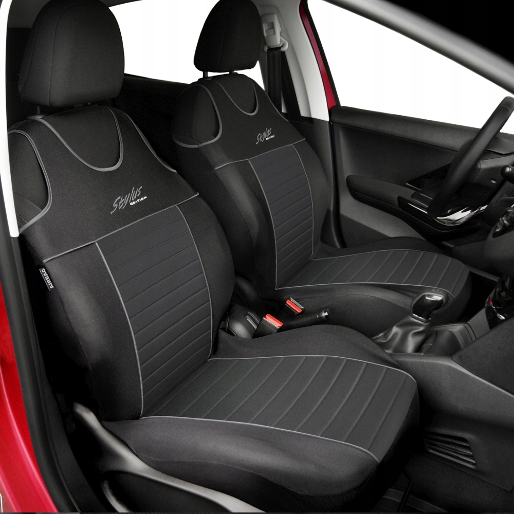 Чехли STYLUS (на передні сидіння) виготовлені з високоякісних оббивних матеріалів. Чохли повністю ламіновані пінополіуретаном (також з боків і ззаду), що запобігає зсуву чохлів відносно сидінь. Шви чохлів оброблені декоративним кантом, який також служить для посилення з'єднань окремих елементів.
