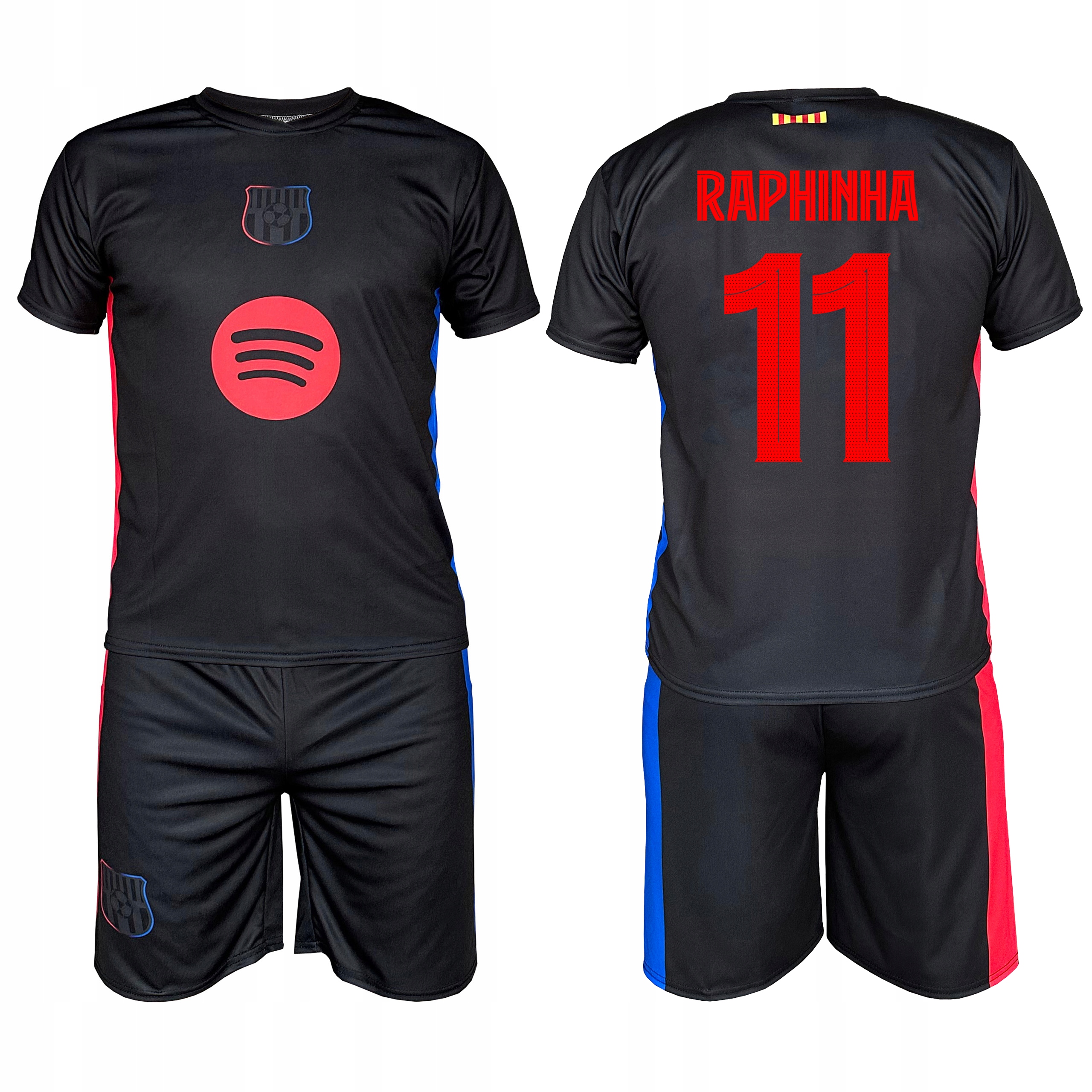 Футбольна форма BARCA з написом RAPHINHA у виїзному варіанті. Виготовлений з міцної та якісної тканини. Матеріал швидкосихаючий, дихаючий і приємний на дотик.