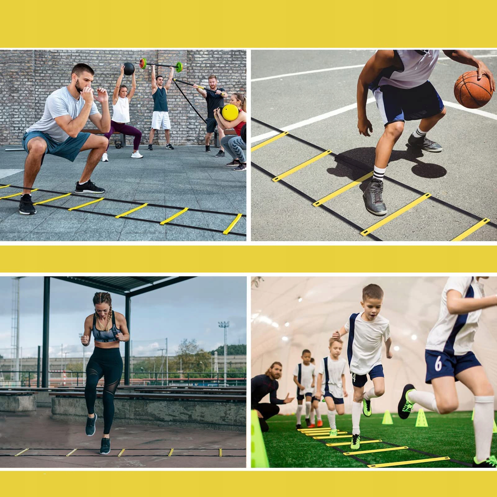 Координаційна драбина виготовлена з високоякісного матеріалу PE, який є дуже міцним і витримує удари та згинання під час тренувань. Футбольний тренер виготовлений з неопрену з інтегрованим дизайном, завдяки якому він довговічний і гнучкий, щоб витримати тисячі ударів і ударів. І сталевий дріт пропускають мотузку.