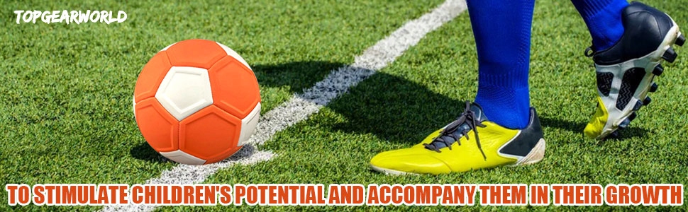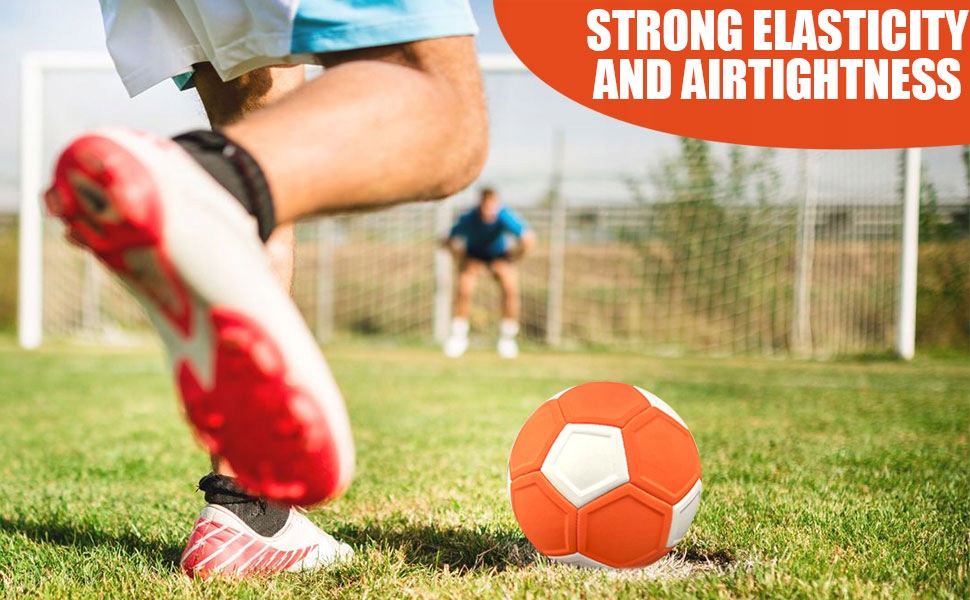 Зовнішній шар виготовлений із 100% екологічно чистої піни EVA, гумового міхура, легшого та меншого, ніж звичайний футбольний м'яч, легкий у згинах, згинах і закручування для початківців, наш футбольний м'яч побудований, щоб вижити і витримати складну гру. Не переповнюйте м'яч газом, оскільки м'яч може легко розбити під тиском.