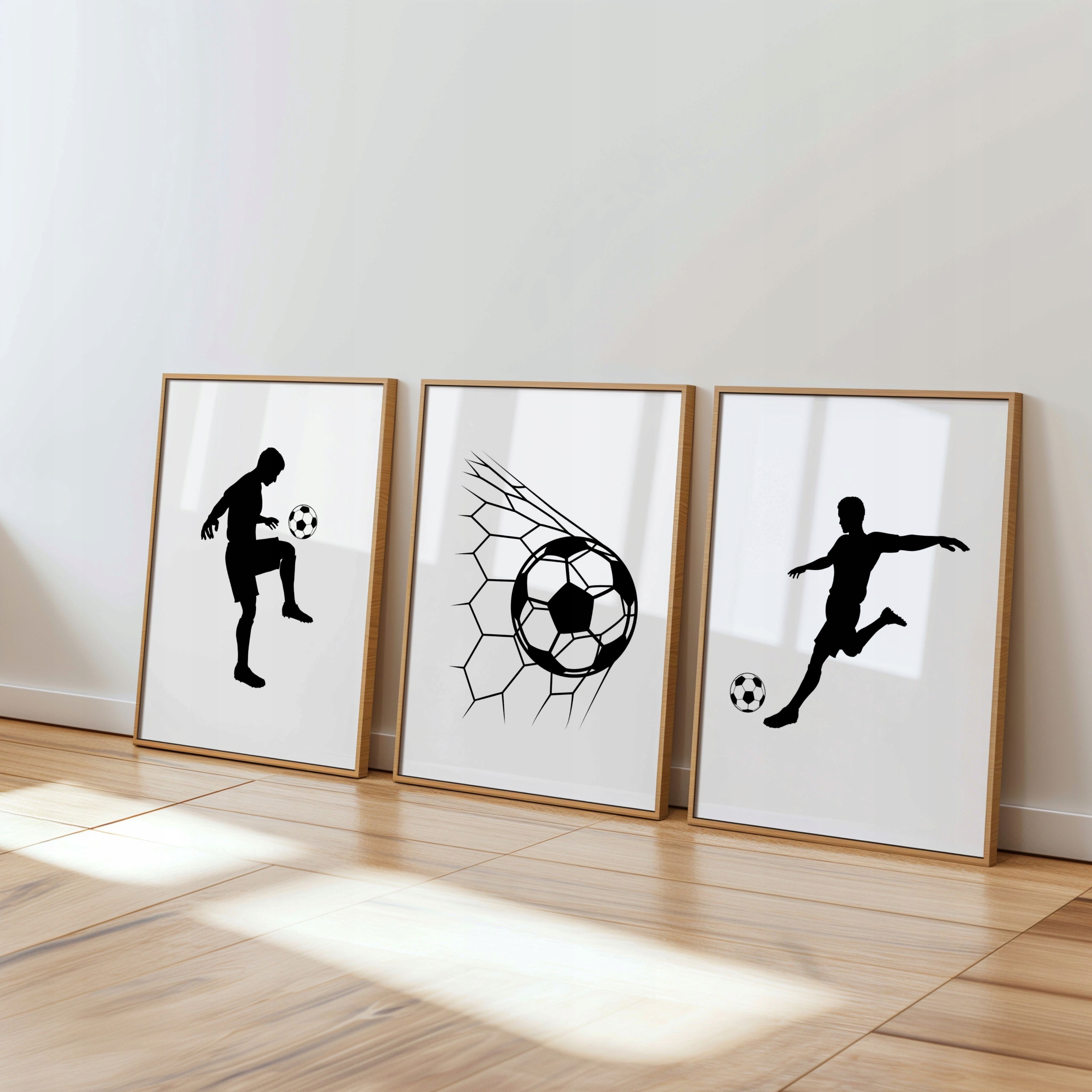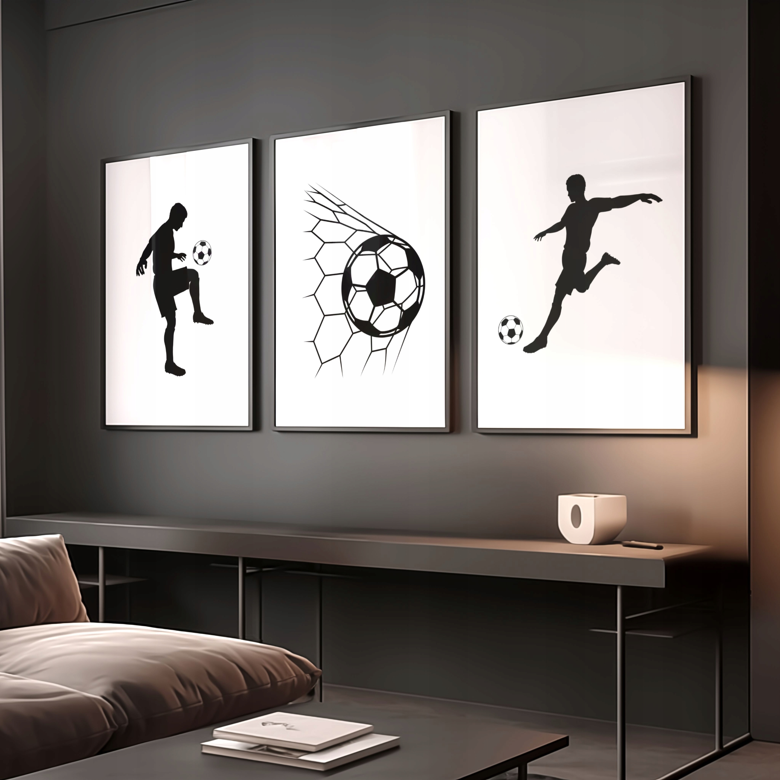 Цей набір із 3 чорно-білих плакатів у сучасному мінімалістичному стилі є ідеальною прикрасою для підлітків і футбольних уболівальників.