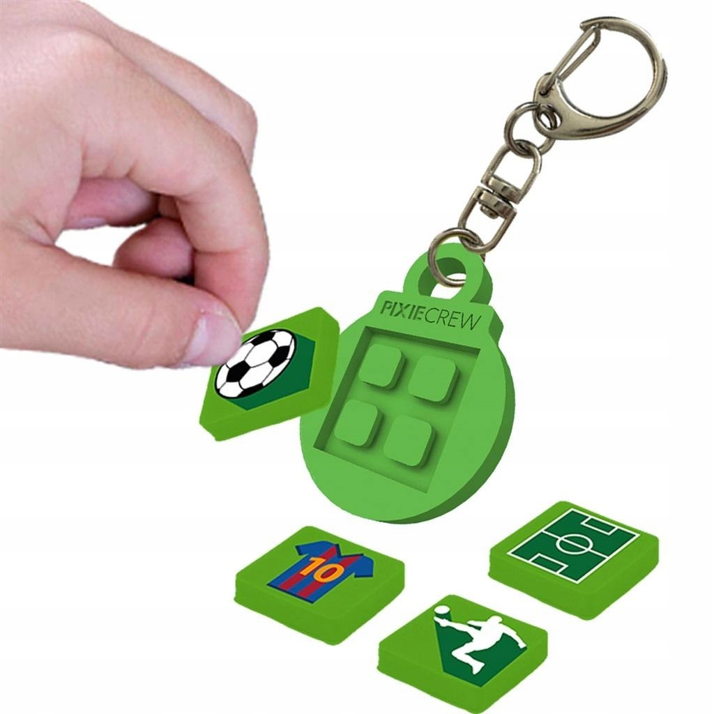 Креативний силіконовий брелок для ключів PIXIE CREW зелений, фігурні колеса є унікальним аксесуаром, який прикрасить все, до чого він прикріплений. На лицьовій стороні є креативна панель, де ви можете створювати оригінальну та персоналізовану графіку за допомогою силіконових пікселів. Брелок поставляється з 4 мультипікселями з футбольним мотивом. Брелок безпечний для здоров'я, не містить фталатів і шкідливих речовин. Відповідає стандарту EN 71.