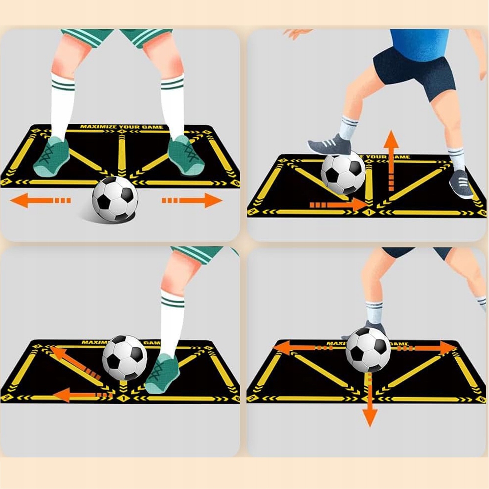 ☑️ Футбольний килимок:Цей тренувальний килимок для контролю м’яча ідеально підходить для тренувань L-подібного штовхання та підтягування, ключової вправи для освоєння швидкої зміни напрямку на полі. Завдяки цьому футбольному тренуванню вдосконалення вашої швидкості та спритності стає цікавим завданням.